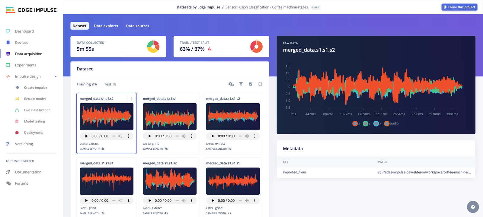 Import this dataset to your Edge Impulse project