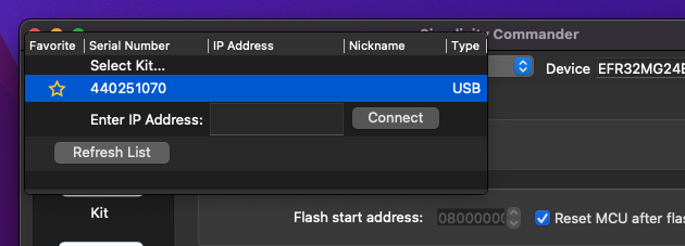 Connecting the xG24 Dev Kit to Simplicity Commander
