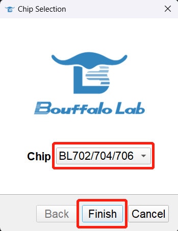 Open previously installed Bouffalo Lab Dev Cube software, select BL702/704/706, and then click Finish