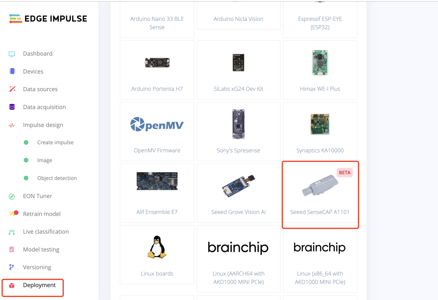 Alternatively, recent versions of Google Chrome and Microsoft Edge can collect data directly from your A1101, without the need for the Edge Impulse CLI. See this blog post for more information.