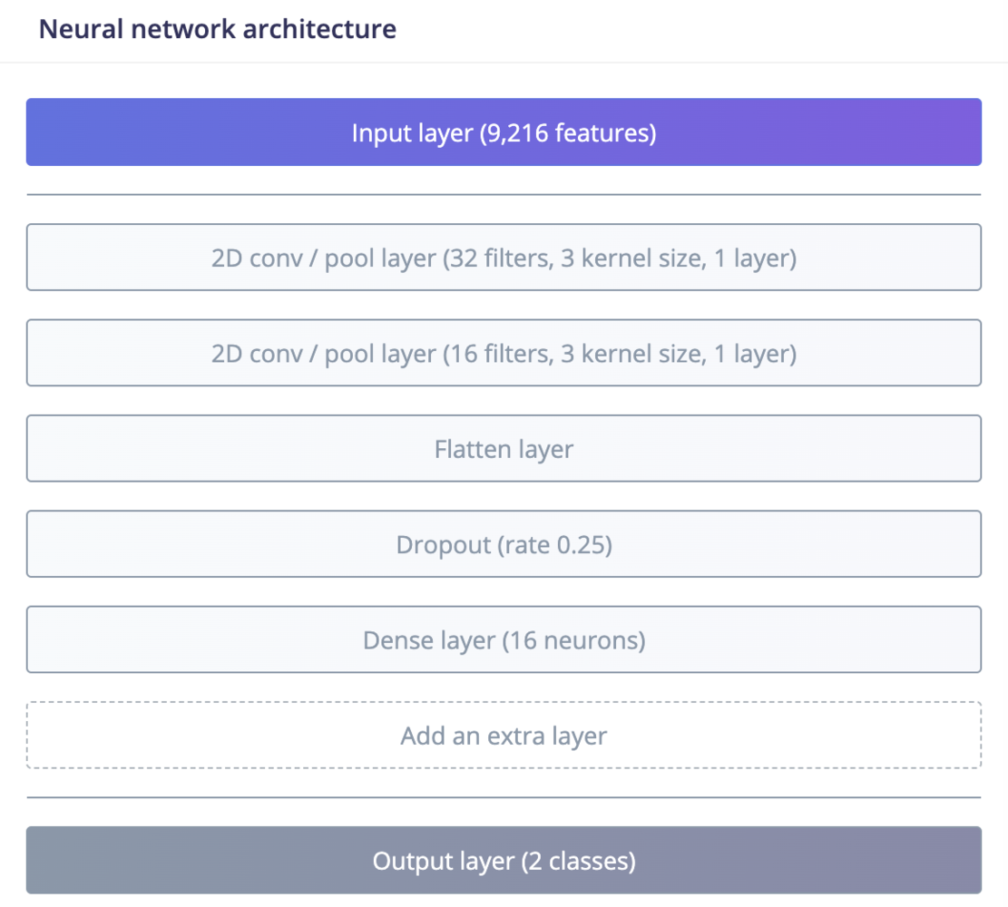 Please note that K-Means and Gaussian Mixture Models (GMM) are not neural networks. They are algorithms used in unsupervised machine learning, specifically for clustering tasks.In Edge Impulse, Neural Networks can be used for supervised learning tasks such as Image or Audio Classification, Regression, Object Detection either using Transfer Learning, using pre-set neural network architectures or by designing your own.How do they work?