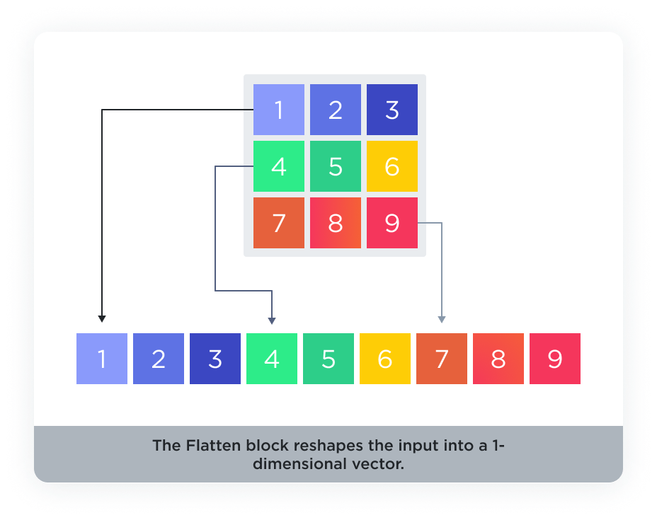 The reshape layer is used to change the shape of the input data without altering its contents. It’s particularly useful when you need to prepare the dataset for certain types of layers that require the input data to be in a particular shape.Flatten layer