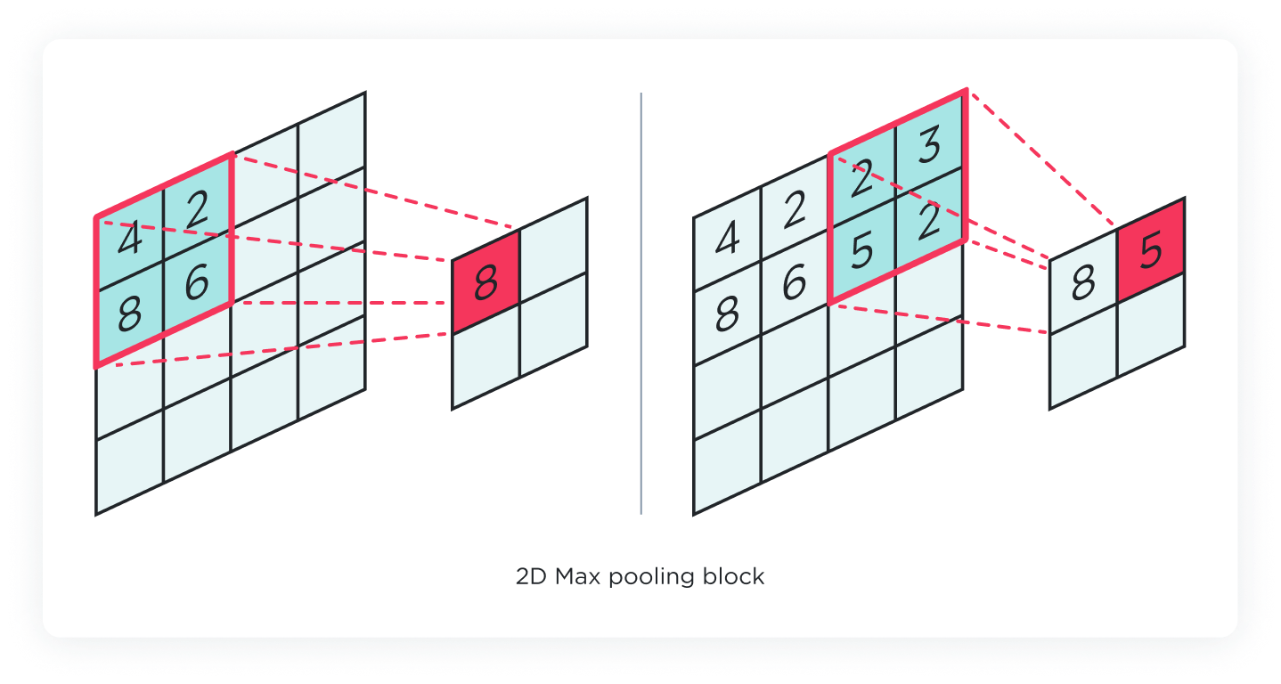 The 2D Pooling layer serves a similar purpose as its 1D counterpart but in two dimensions. After the convolution layer has extracted features from the input, the pooling layer reduces the spatial dimensions of these feature maps. It summarizes the presence of features in patches of the feature map and reduces sensitivity to the exact location of features. Max Pooling and Average Pooling are common types of pooling operations used in 2D Pooling layers.