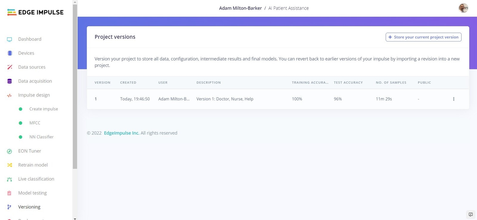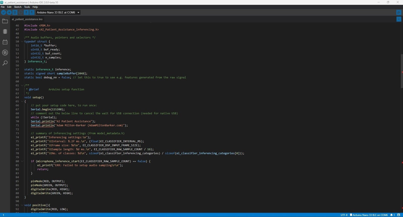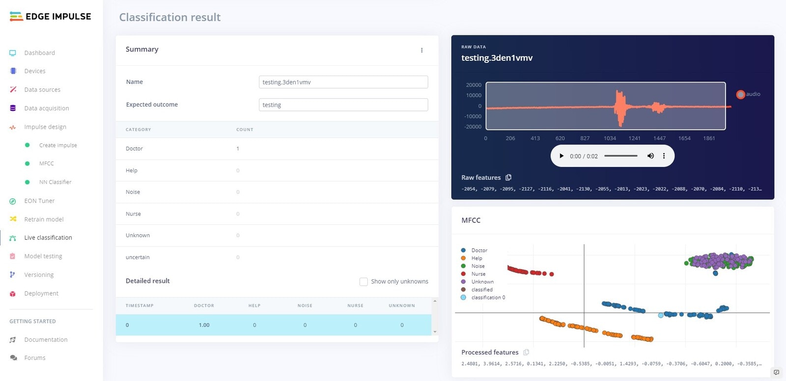 Here we have created a simple but effective solution for detecting specific keywords that can be part of a larger automated patient assistance system. Using a fairly small dataset we have shown how the Edge Impulse platform is a useful tool in quickly creating and deploying deep learning models on edge devices. You can train a network with your own keywords, or build off the model and training data provided in this tutorial. Ways to further improve the existing model could be:- Record more samples for training