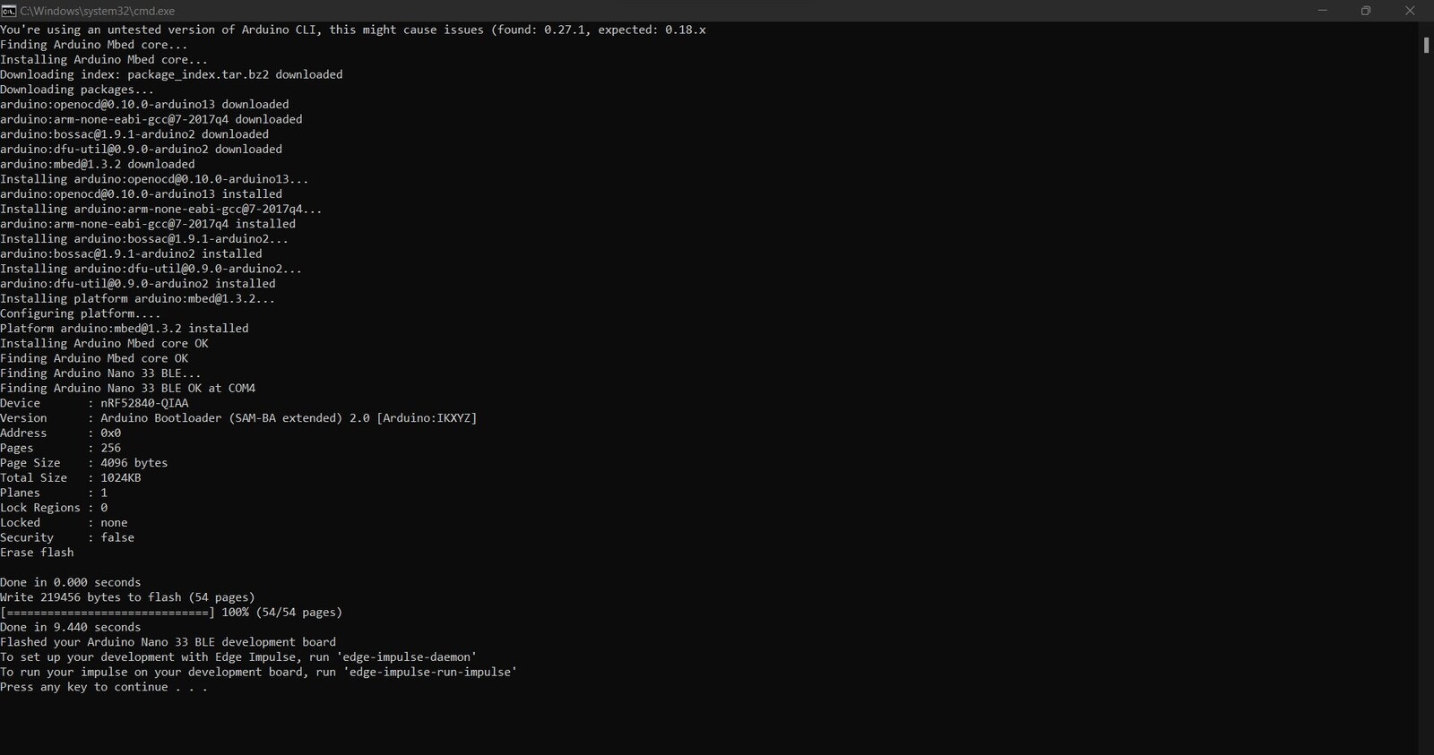 Now we will deploy an Arduino library to our device that will allow us to run the model directly on our Arduino Nano 33 BLE Sense.