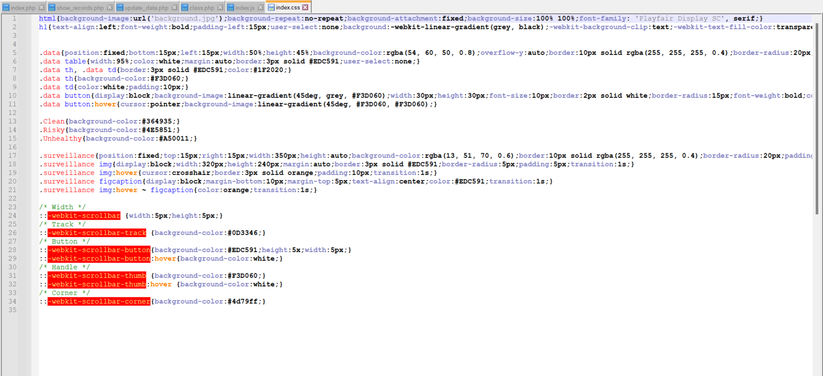 Step 2: Developing a web application displaying real-time database updates in PHP, JavaScript, CSS, and MySQL