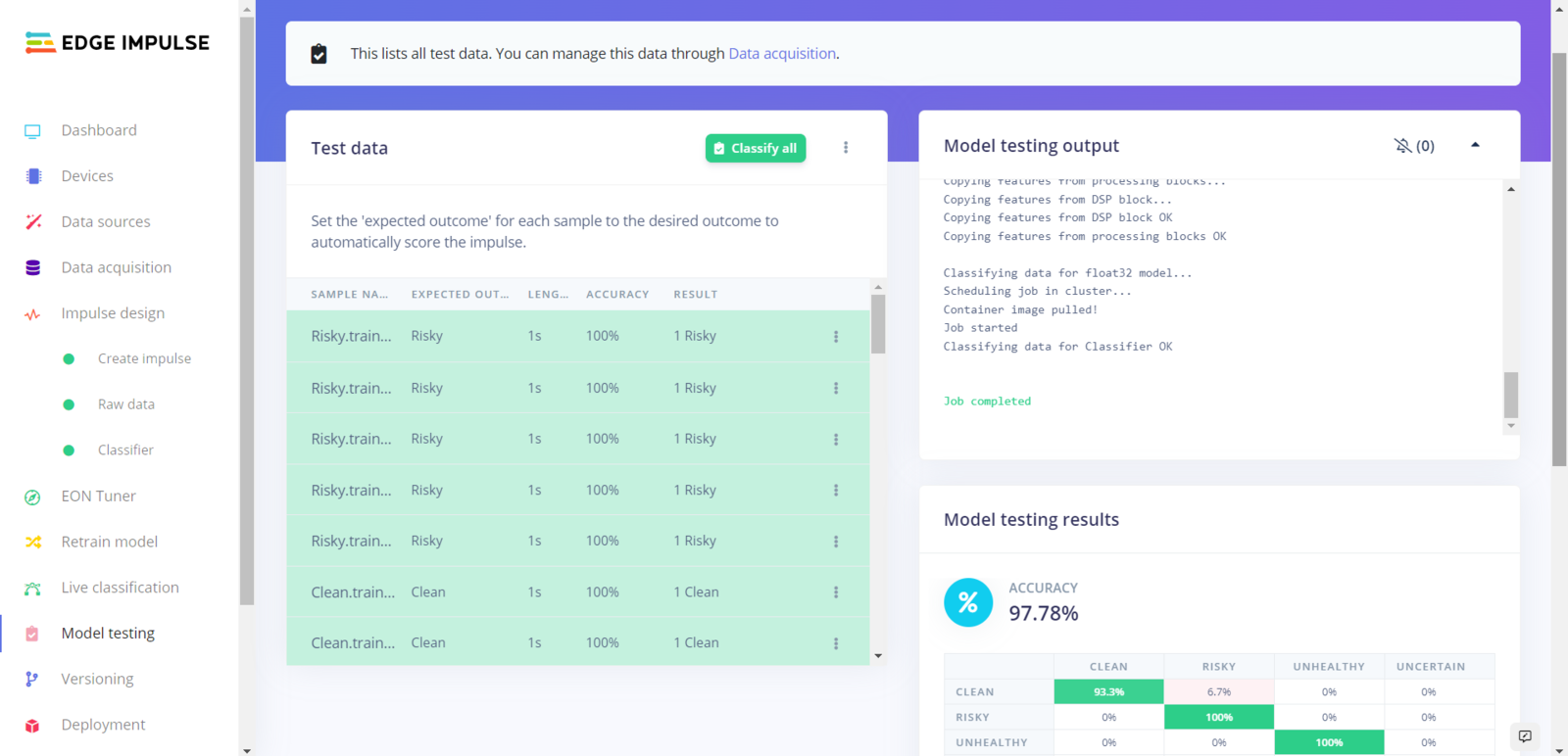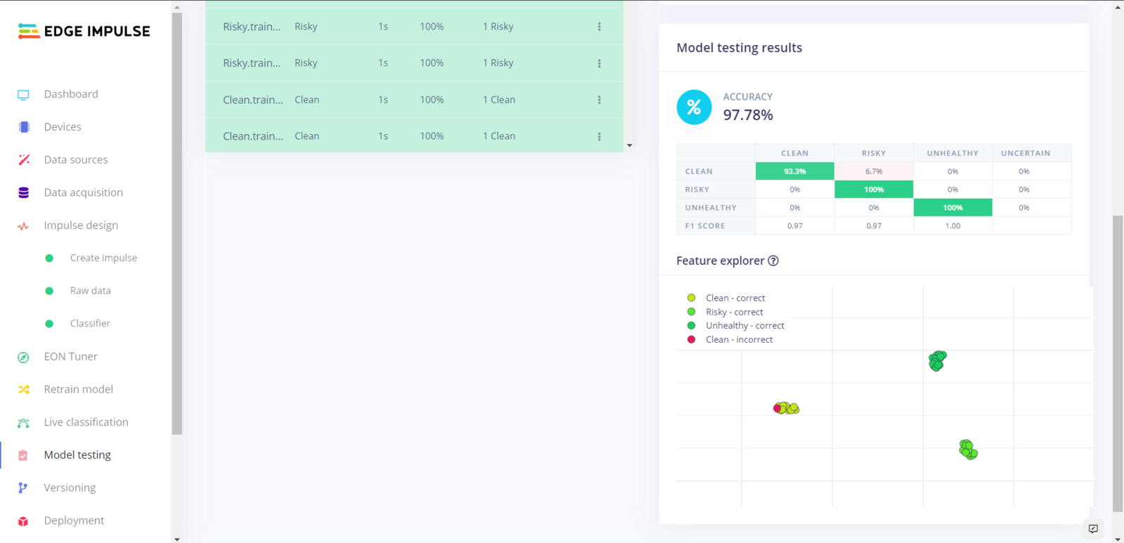 My Edge Impulse neural network model predicts possibilities of labels (air pollution classes) for the given features buffer as an array of 3 numbers. They represent the model’s “confidence” that the given features buffer corresponds to each of the three different air pollution levels (classes) [0 - 2], as shown in Step 5:- 0 — Clean