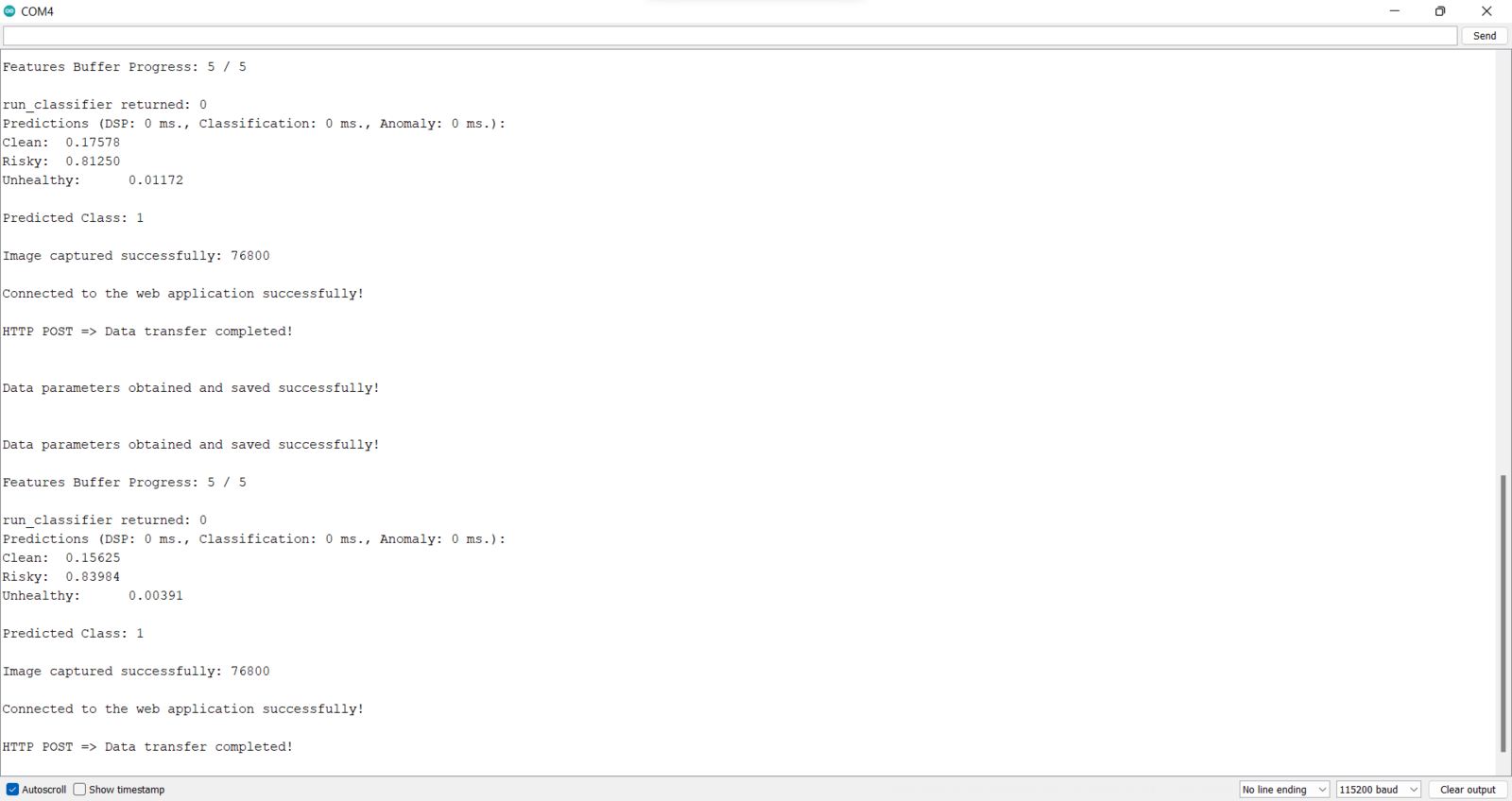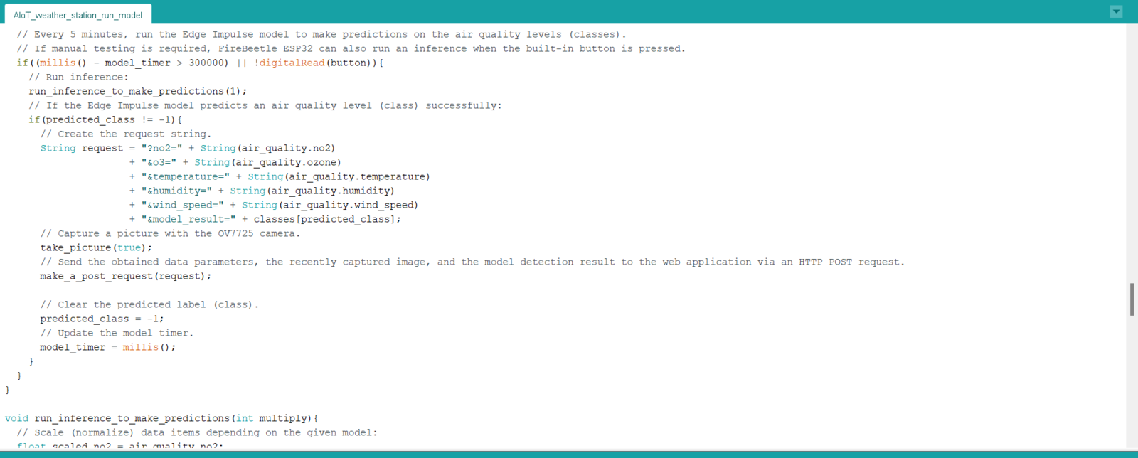 Step 7: Running the model on FireBeetle ESP32 to forecast air pollution levels and transferring the model results w/ surveillance footage via POST requests