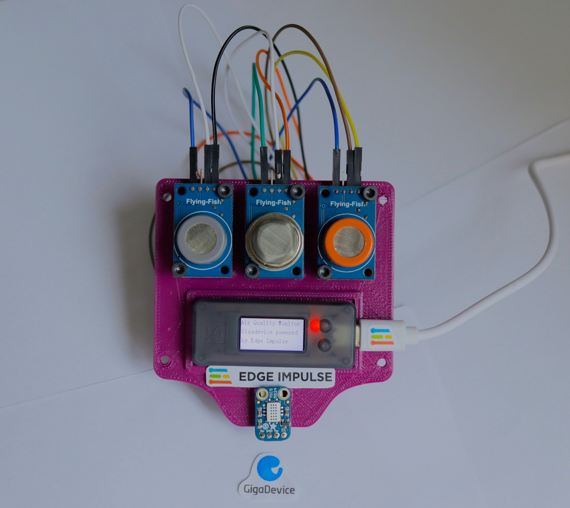 We have developed a prototype that uses a Sipeed Longan Nano V1.1 with a RISC-V Gigadevice microprocessor and gas sensors to detect trends in the variation of air quality dimensions by creating a Machine Learning model in Edge Impulse and deploying it on the device to trigger an alarm if they are headed towards a critical level. This will allow for swift intervention to prevent the air quality from reaching hazardous levels.Hardware Requirements