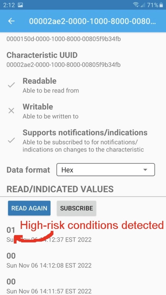 Edge Impulse offers many options for deployment, but in my case the best option was the “Arduino library” download. This packaged up the entire classification pipeline as a compressed archive that I could import into Arduino IDE, then modify as needed to add my own logic. That allowed me to send Bluetooth Low Energy messages when certain thresholds were met. The Arduino sketch is available here.