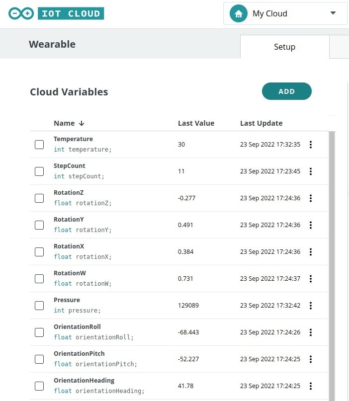 - Data gathering for ML - The Arduino Nicla Sense ME will send motion and environmental data to another device over a Bluetooth connection and the data will be stored in the Arduino IoT Cloud for future processing.