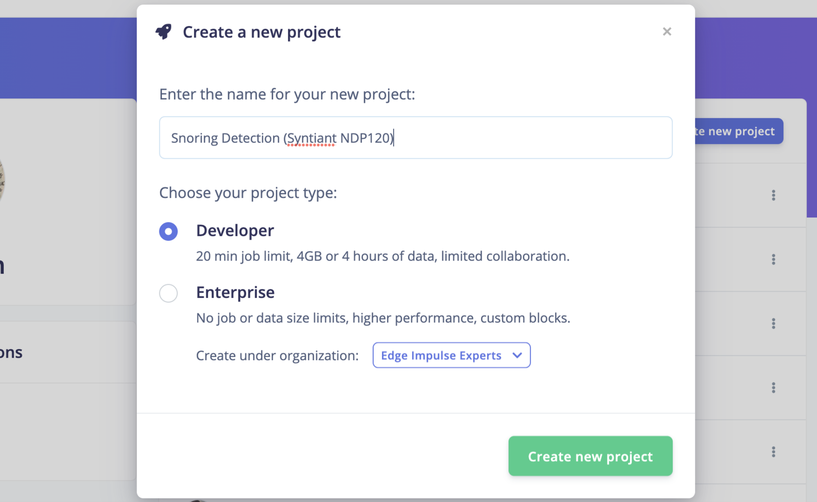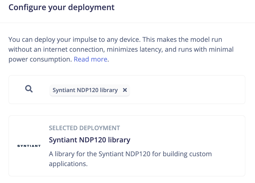 When deploying the model on Nicla Voice, we must choose the Syntiant NDP120 library option on the Deployment page.
