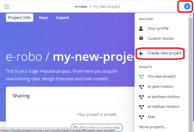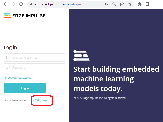 - Login or register at Edgeimpulse.com