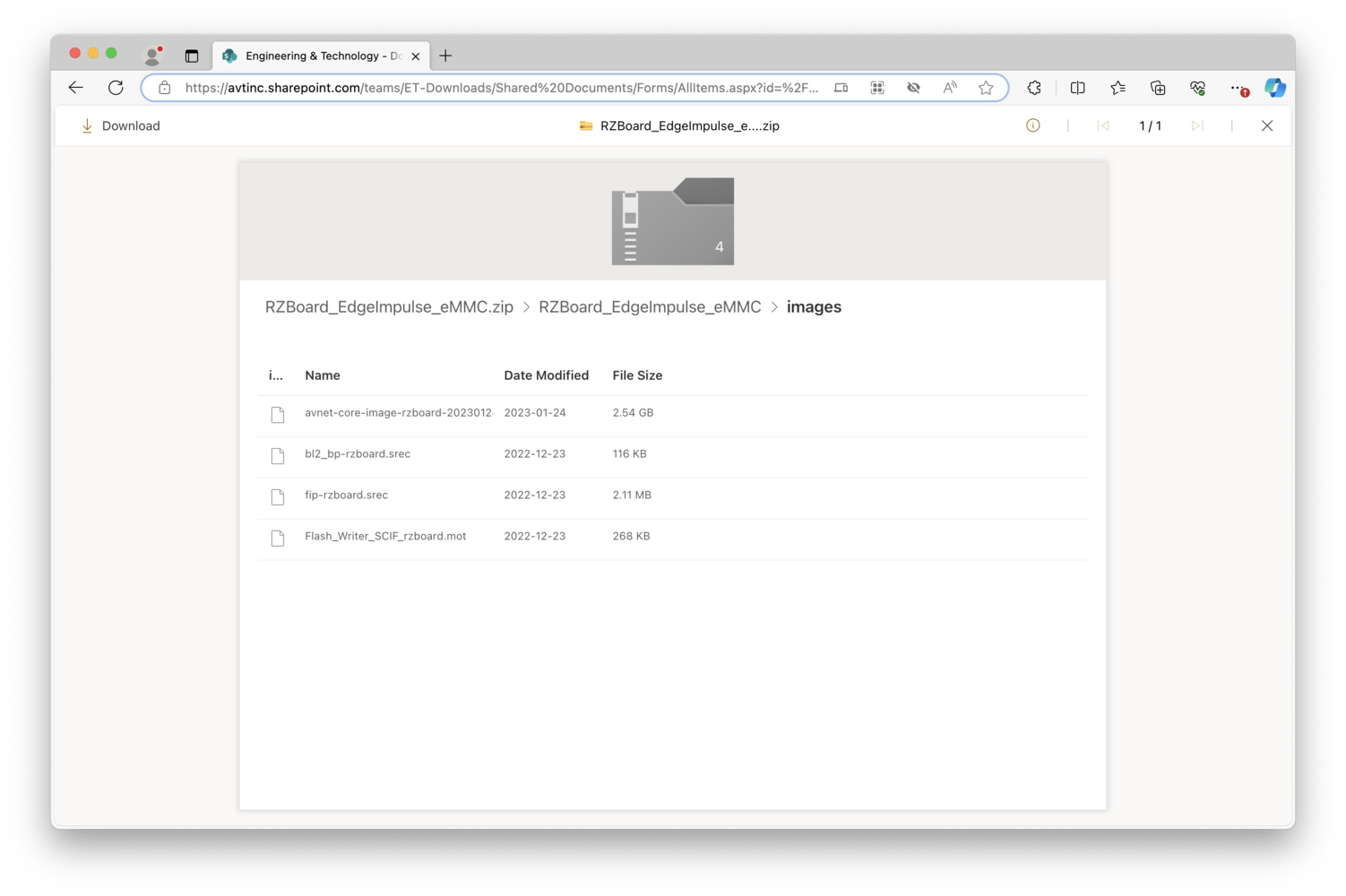 , so that we can install the Edge Impulse Linux Runner. You could go down the path of building Yocto yourself (I tested it, and it does work fine), but to save you the trouble Avnet has already gone ahead and built one, that you can find in their Sharepoint site here.