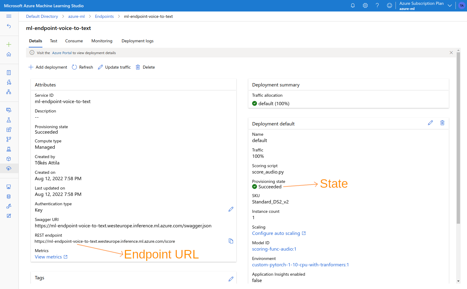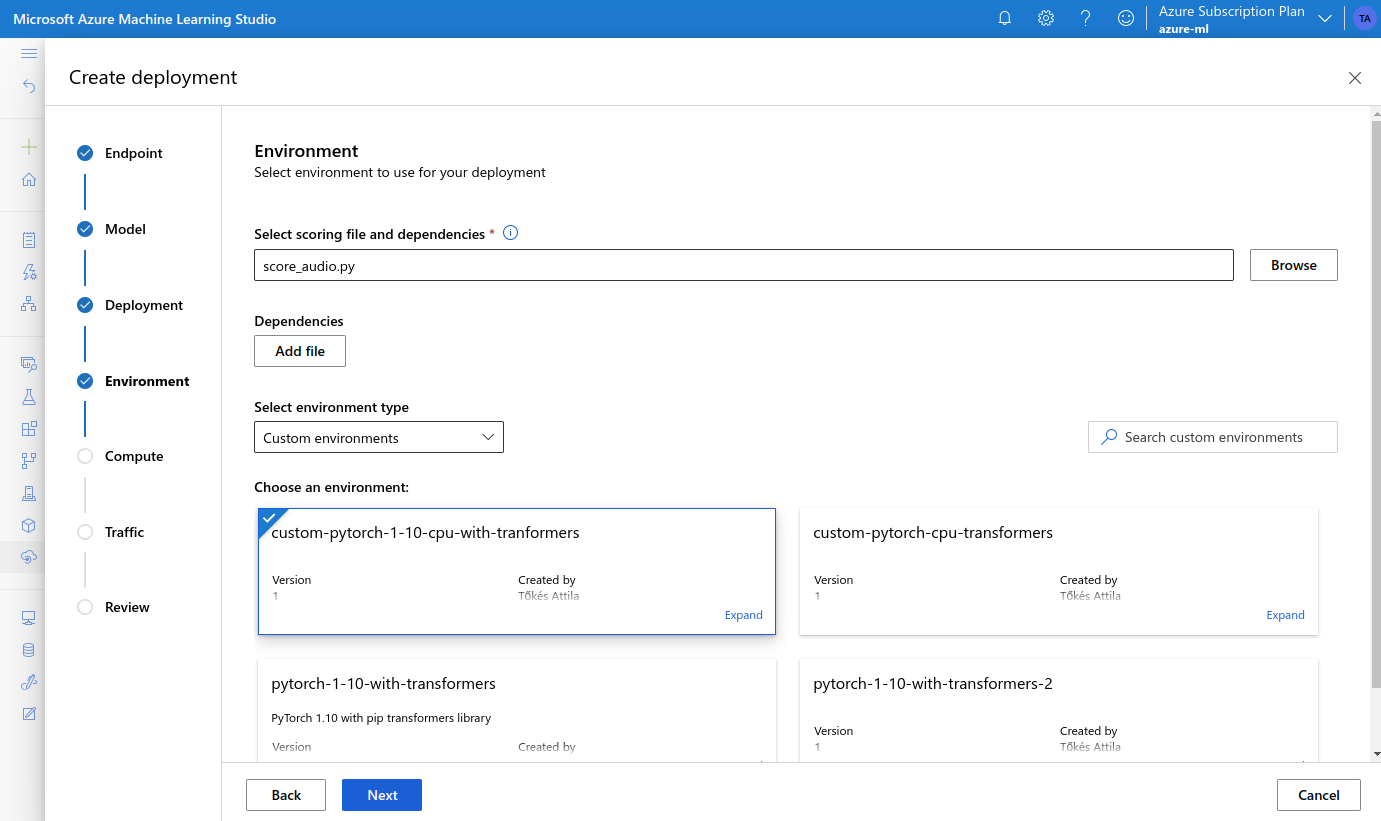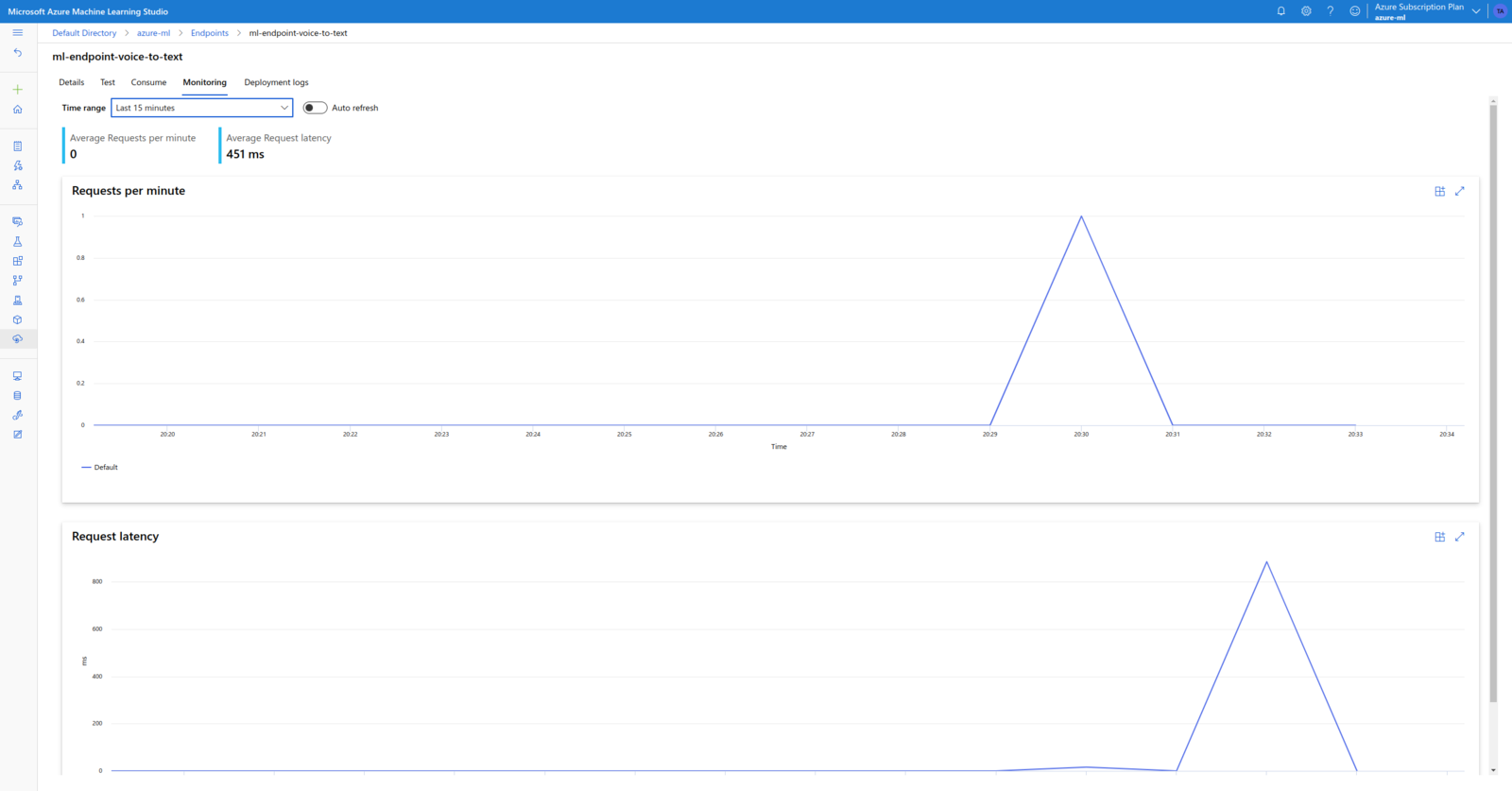 Azure Machine Learning is Microsoft’s cloud offering of machine learning services, covering the machine learning project lifecycle, including training and inference. It supports all the popular open-source machine learning frameworks such as TensorFlow, PyTorch and others. In this section I will show how to implement a voice-to-text translation endpoint with Azure ML.The Model