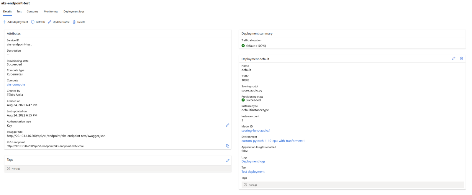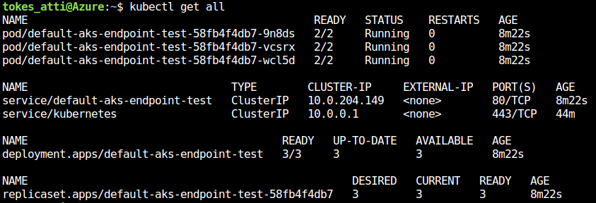 CLI tool we can also see what resource Azure ML deployed in our Kubernetes Cluster: