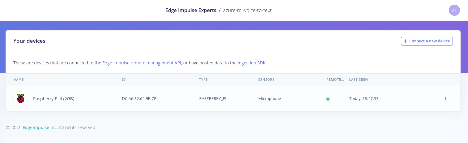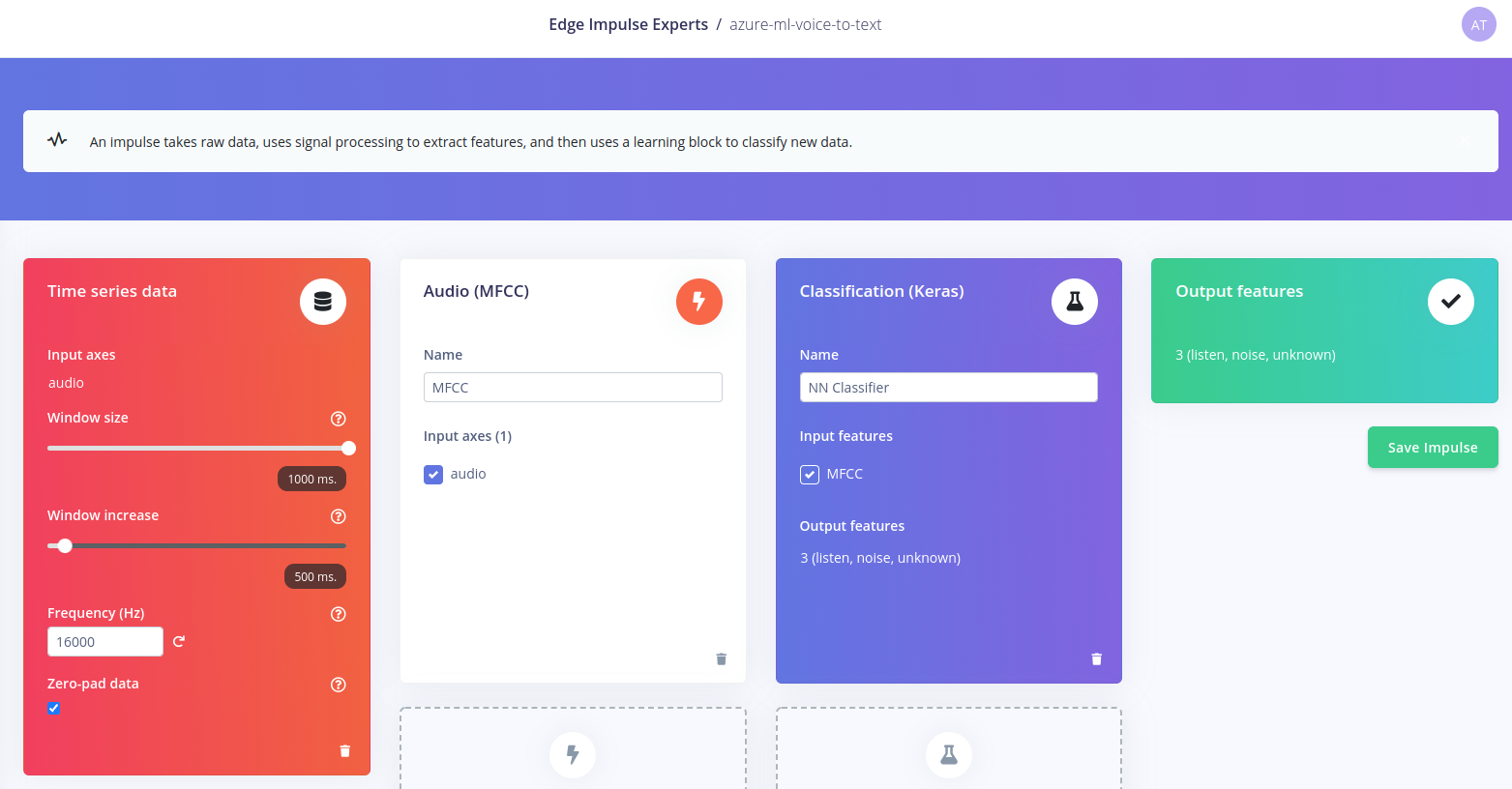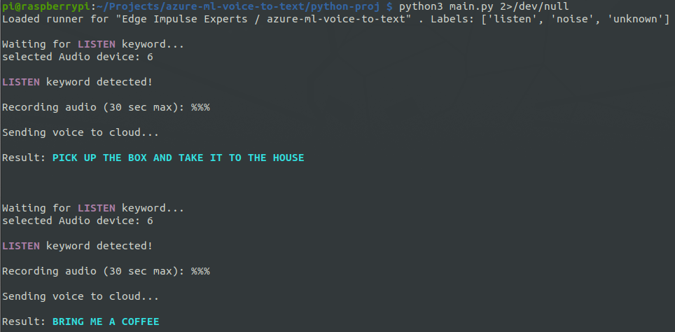 In the following sections I will describe how such an application can be implemented. We will start with the voice-to-text endpoint implemented with Azure ML, and then we will integrate this into an Edge Impulse application running on the Raspberry Pi.
