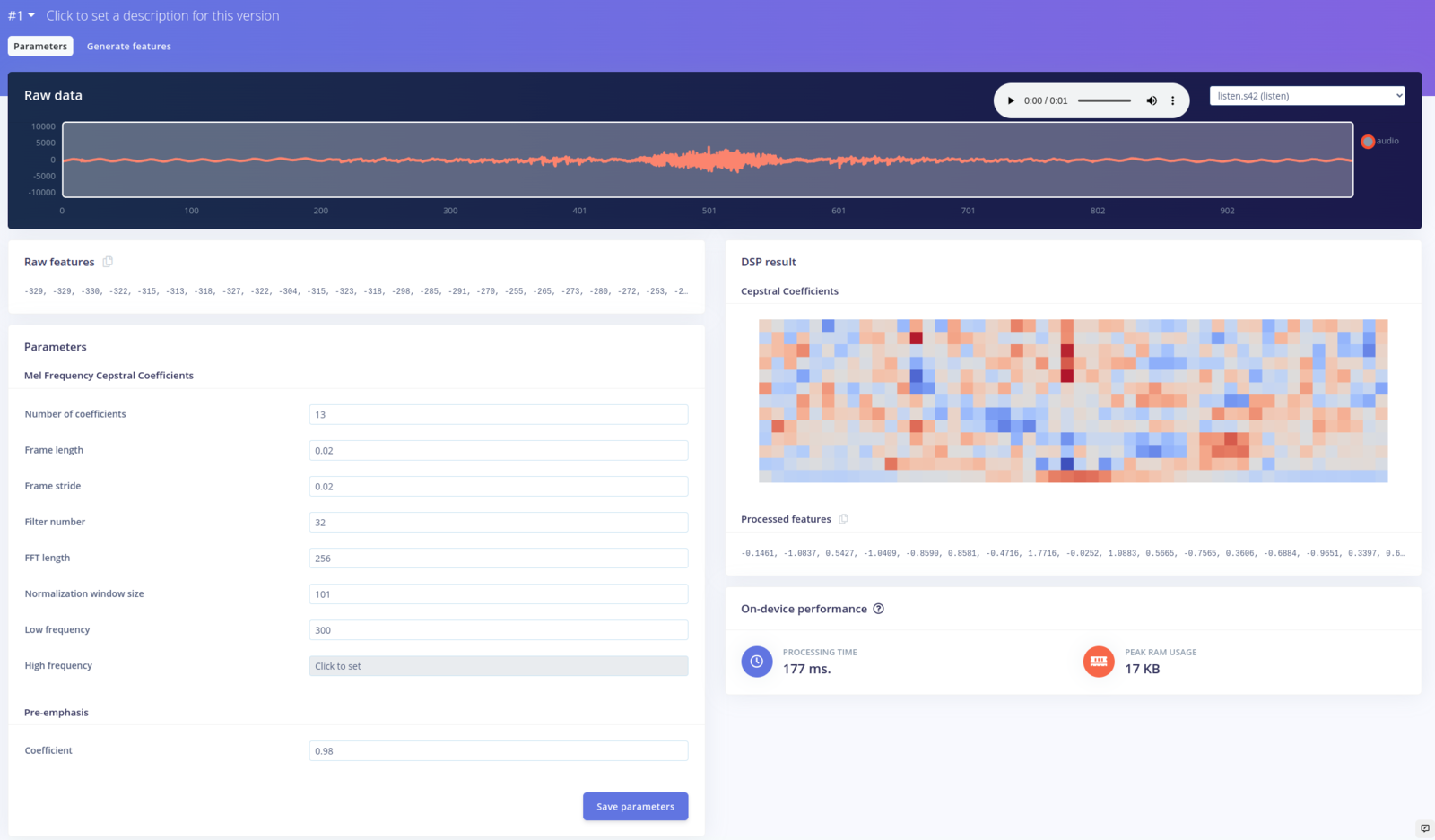 - an Audio MFCC processing block, which extracts cepstral coefficients from the audio data