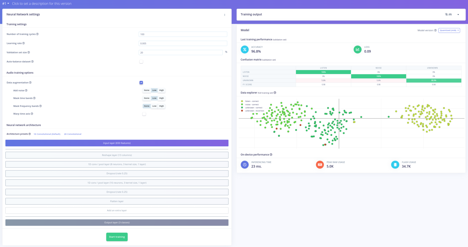 Now that we have the keyword spotting working, we can develop an app that also takes advantage of the Cloud ML functionality. So, using the Python SDK I created a simple app that does the following:- detects the “Listen!” keyword using the Edge Impulse model