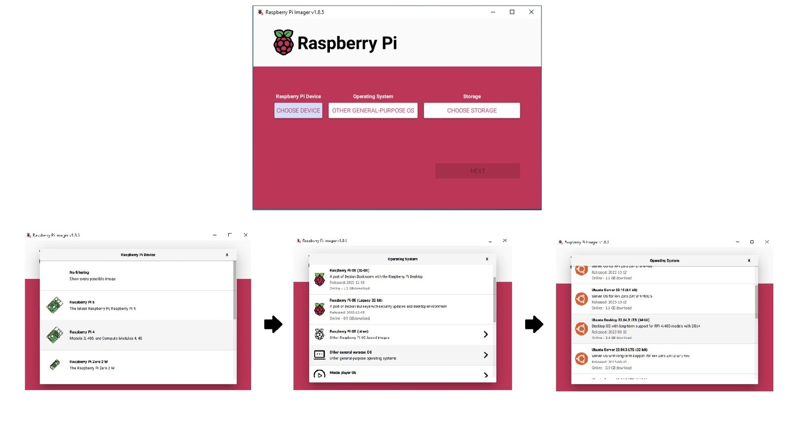 You need to install the Raspberry Pi Imager V1.8.5 or higher, and have a spare SD Card ready. An SD card with a minimum size of 16Gb is required. When selecting the OS, instead of choosing Raspberry Pi OS, a desktop version of Ubuntu needs to be installed.