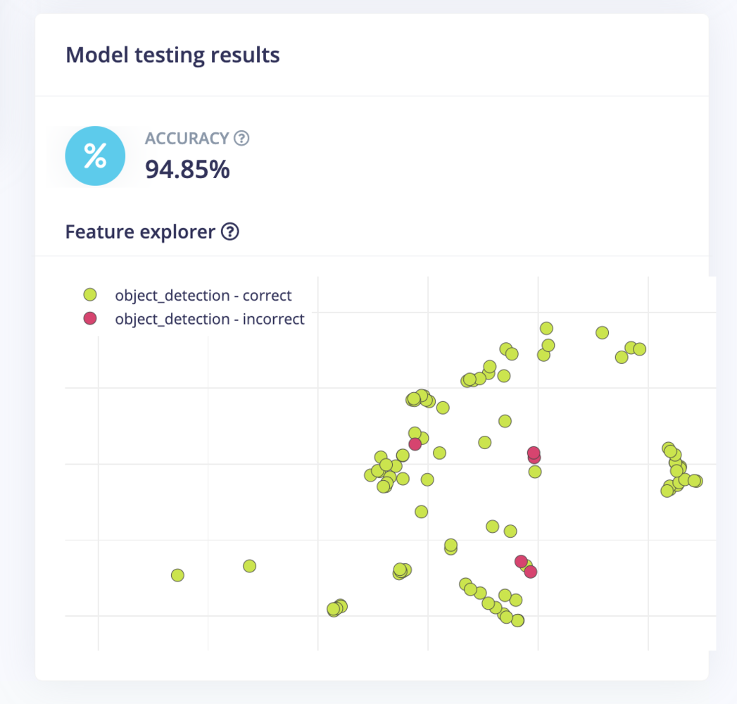 On the Model testing page, click on the Classify All button which will initiate model testing with the trained model. The testing accuracy is 94.85%.