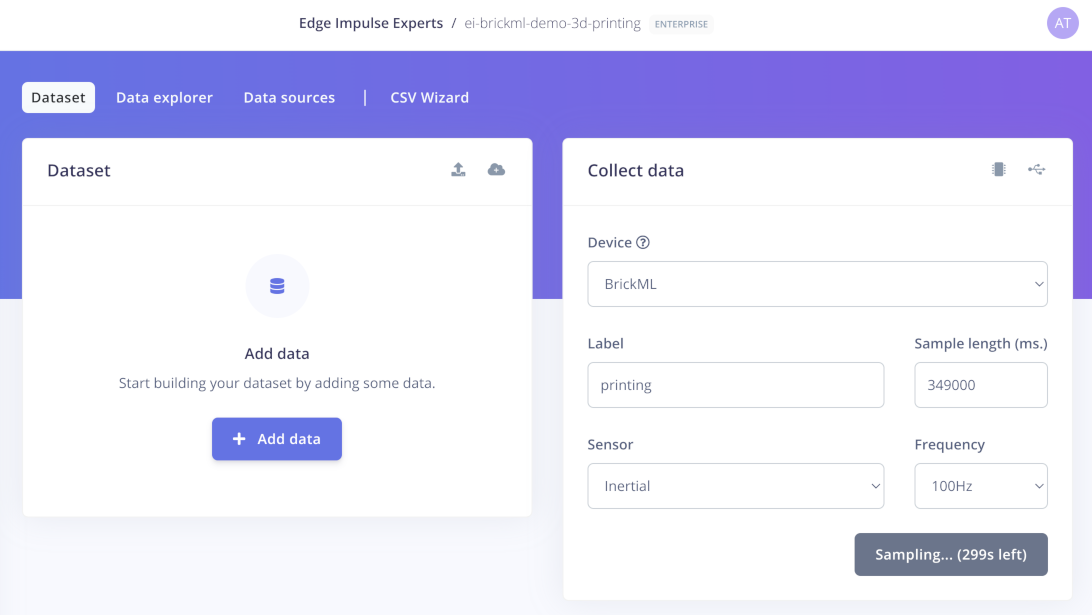 The first step of an AI / ML project is the data collection. In Edge Impulse Studio we do this from the Data acquisition tab.