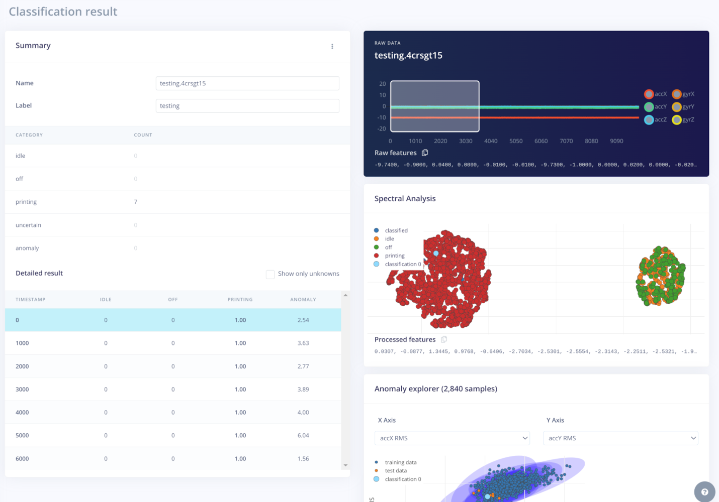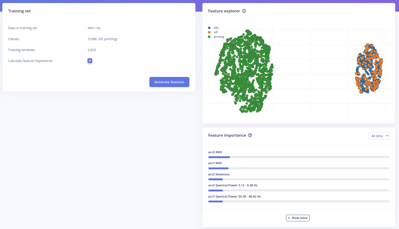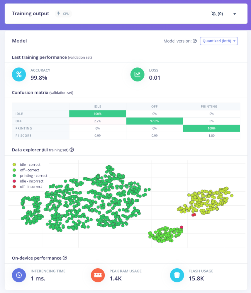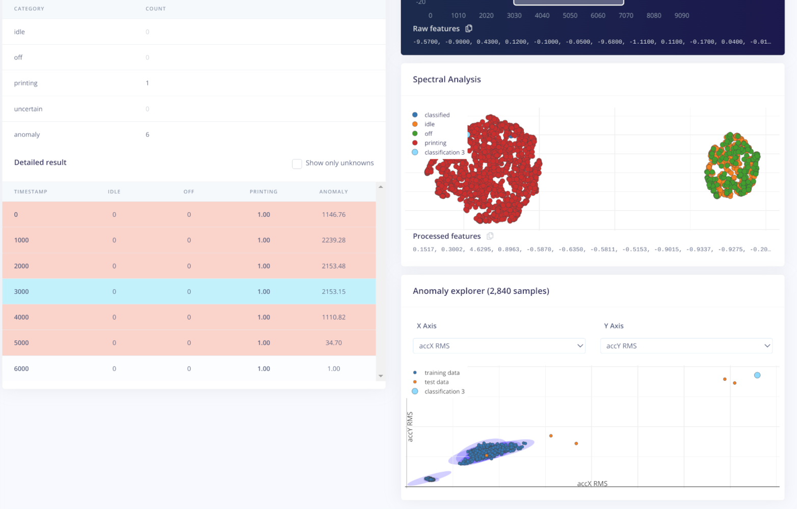 printing, idle and off states well separated. We have a small number of idle and off samples overlapping, but this is expected as the two categories are quite similar.
