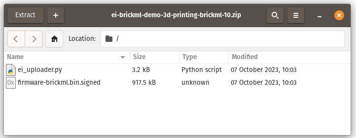 .zip archive containing two files: a signed binary firmware image, and an uploader script.