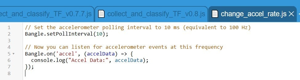 One thing that might improve the accuracy somewhat is to change the accelerometer frequency from 12.5 Hz to e.g. 100 Hz, I’ve tested that this is possible. With help of ChatGPT I also tried to replicate the spectral features in Edge Impulse, but finally needed to leave it out of the scope. The app already outperforms my Garmin watch in switching from one activity to another without me taking any actions on the watch. Another, quite straightforward improvement, is to make the app a real Bangle app, this can be done by following the steps in the paragraph Making an App here. New features can of course be added to the app, heart rate data, steps, altitude etc.