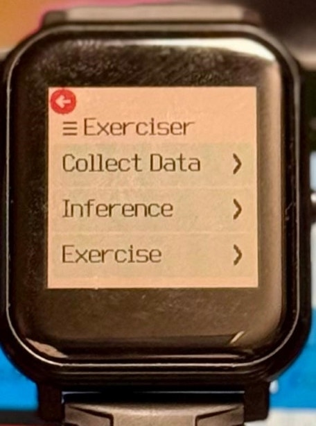 Collect Data- collect data for different activitiesInference- run inference to test the current ML-model without storing any further dataExercise- run inference and also collect what activities were performed and the length of them into a CSV-file