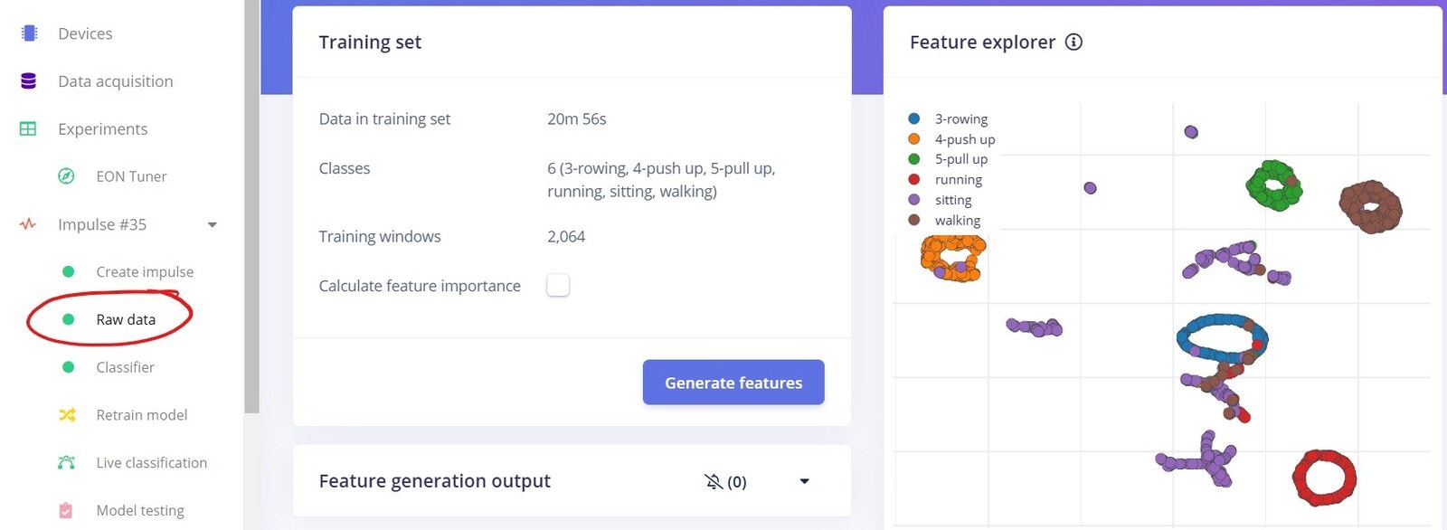 - Uploading the activity files to Edge Impulse