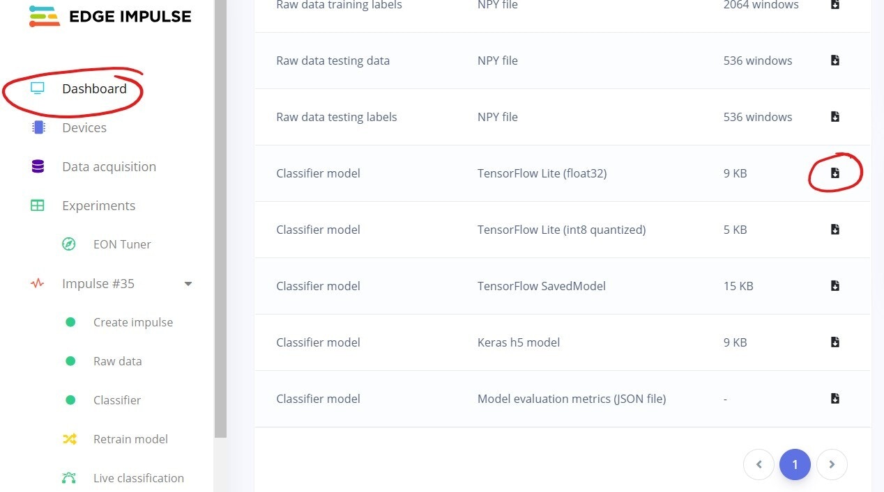 As mentioned, Bangle is not officially supported by Edge Impulse, so you can’t use the Deployment menu option. This doesn’t of course stop you as the only thing that really matters is that both Bangle and Edge Impulse support Tensorflow Lite.Do this in Edge Impulse: