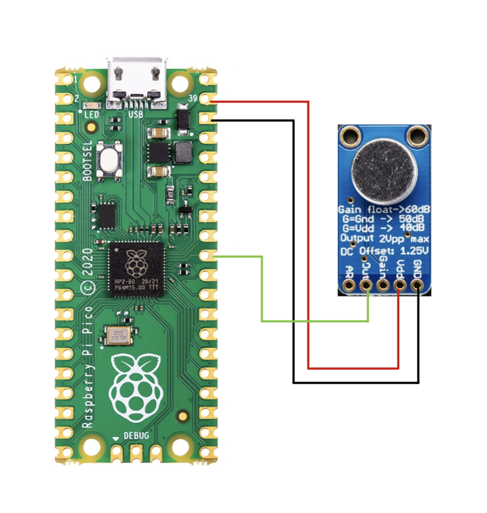 Most machine learning applications benefit from using training data collected from the system on which you will perform inferencing. In the case of embedded keyword spotting, things are no different. Subtle variations between device microphones and noise signatures can render a model trained on one system useless on another. Therefore, we want to collect audio data for training using the very circuit that we’ll use to perform inferencing. The Raspberry Pi Pico can actually collect data at an extremely high sample rate. In my testing, you can achieve sample rates of up to 500 kHz. Pretty neat! For audio, of course, a much lower sample rate is sufficient. Lossless audio is sampled at up to 44 kHz (twice the maximum frequency that human ears can hear thanks to the Nyquist sampling theorem), but for keyword spotting we can get away with something as low as 4 kHz. Lower sample rates are generally better because they decrease the computational burden on our inferencing platform; if we go too low, we start to sacrifice audio fidelity and spotting keywords becomes impossible.Getting Data to Your Computer