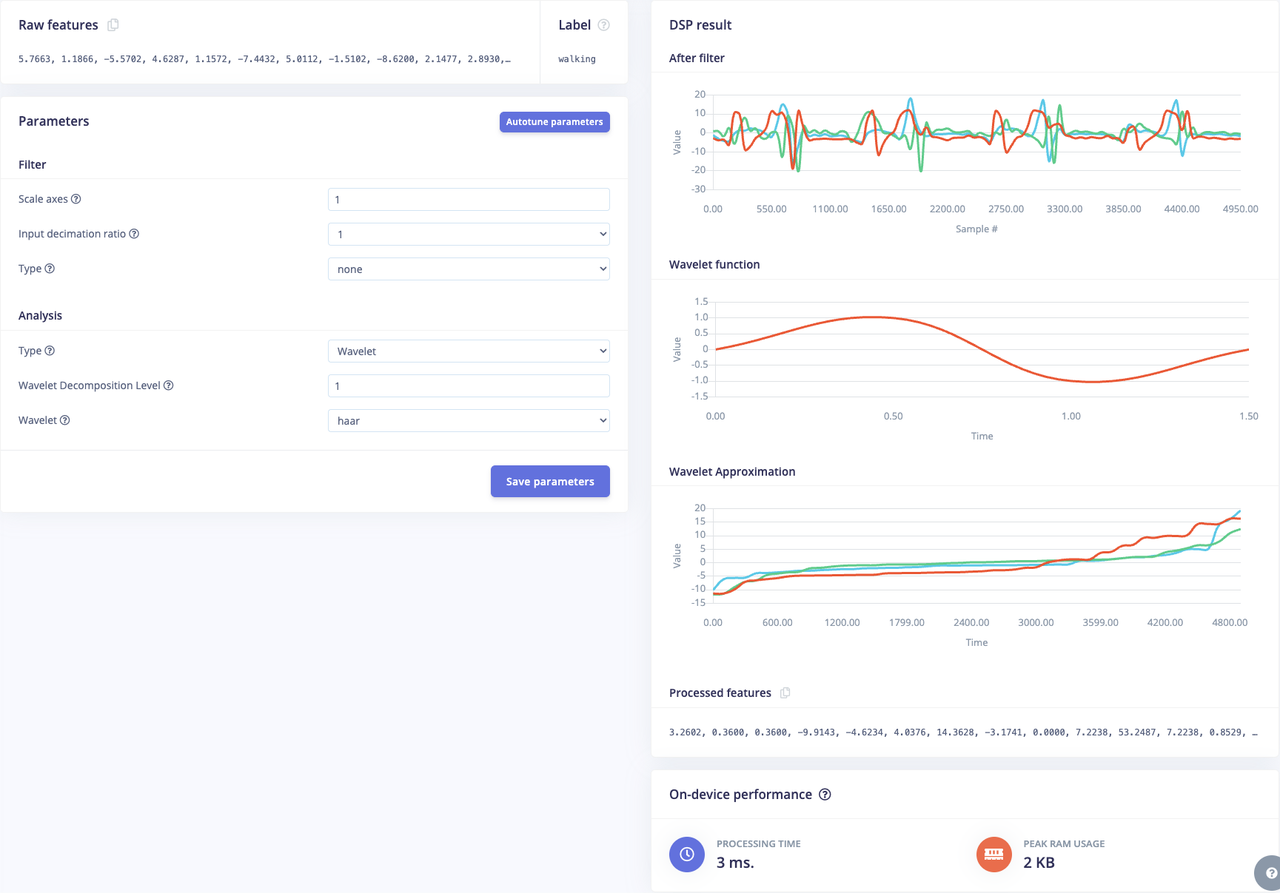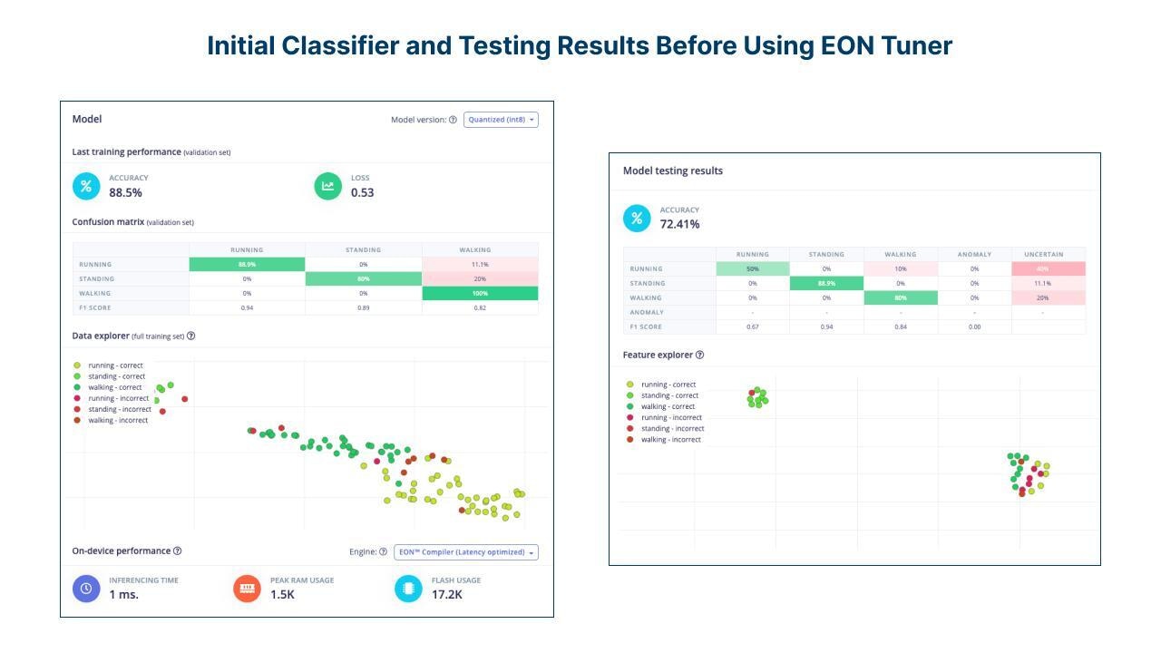 After thorough testing, including using the EON Tuner, the optimal settings for our time series data were determined. We employ both a classifier and K-means anomaly detection to enable both gait pattern classification and anomaly scoring.
