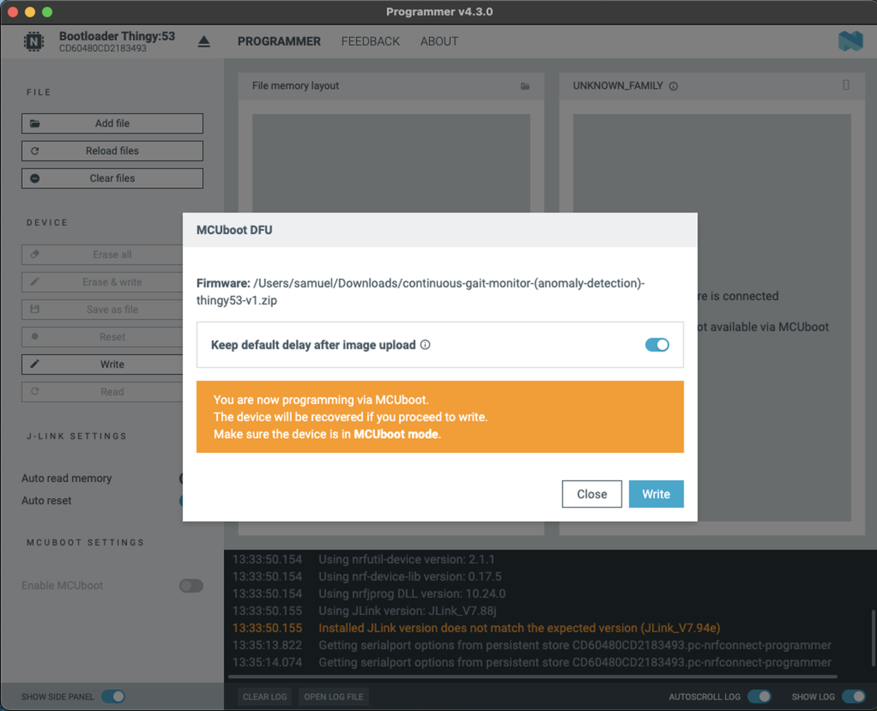 - nRF Programmer App (iPhone/Android)