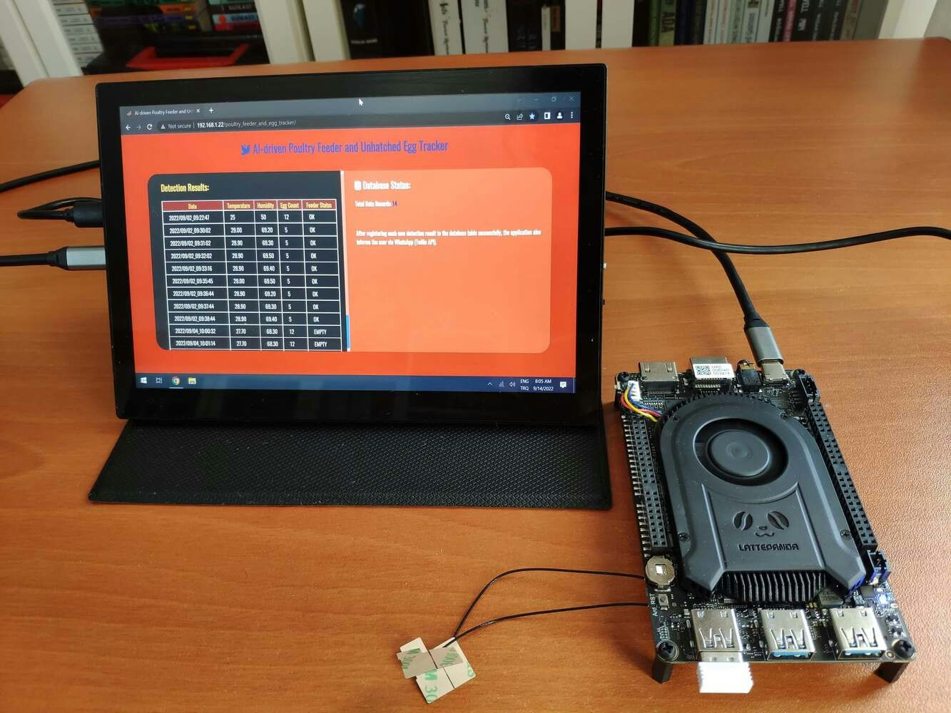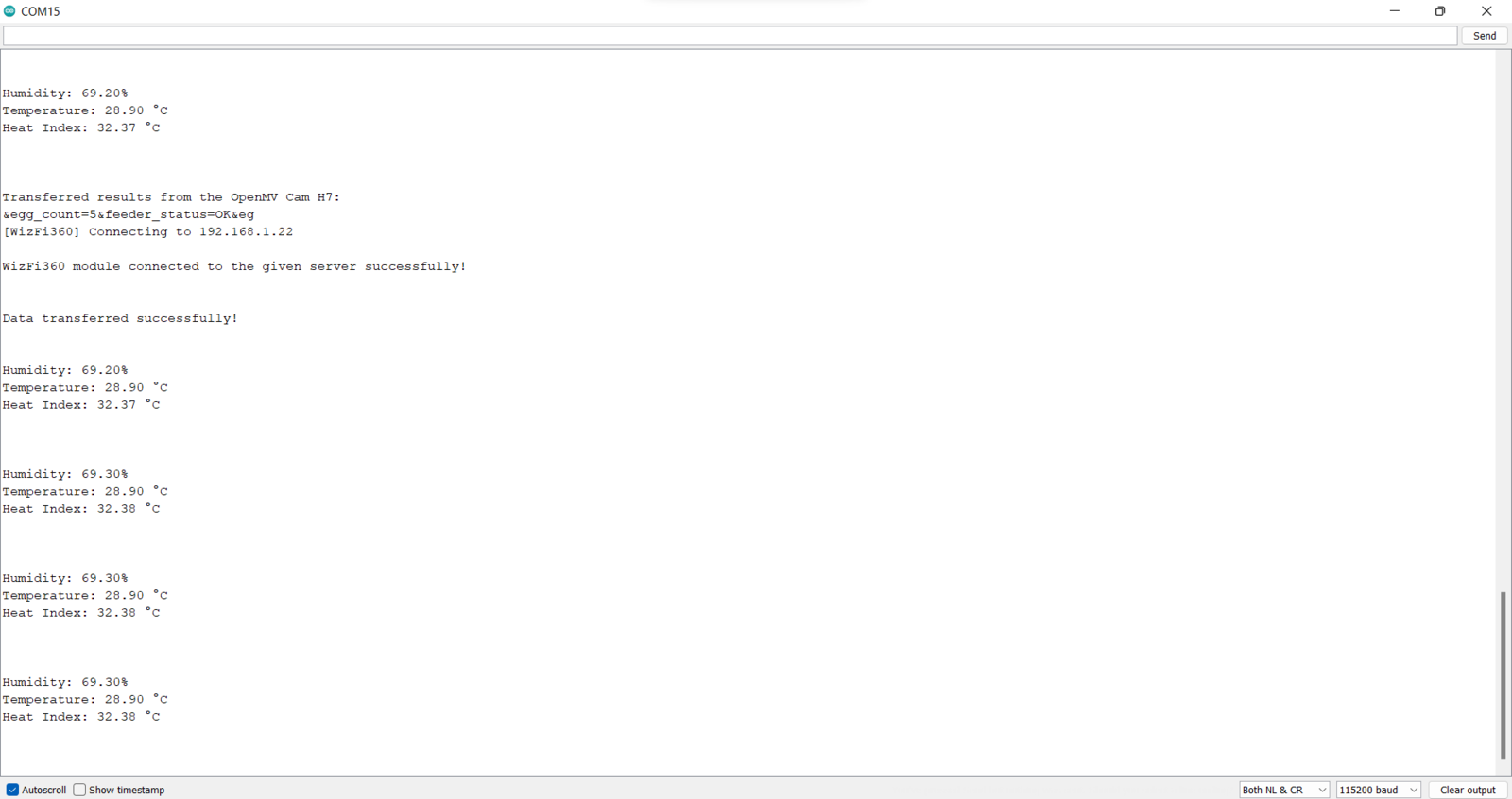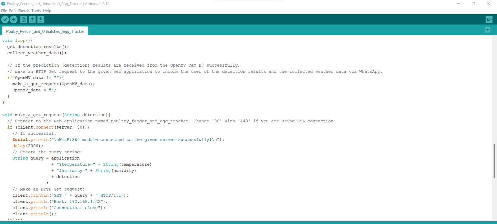 After running the Poultry_Feeder_and_Unhatched_Egg_Tracker.ino file on WizFi360-EVB-Pico: 🐤🥚 The device transmits the detection results and the collected weather data to the PHP web application when WizFi360-EVB-Pico receives the detection results from OpenMV Cam H7 via serial communication every half an hour. 🐤🥚 As explained in Step 3, when the web application obtains the detection results and the collected weather data via an HTTP GET request, the application appends the current date & time and logs the received data to the given MySQL database table. 🐤🥚 Then, the application shows all registered data records as a list on the home page.
