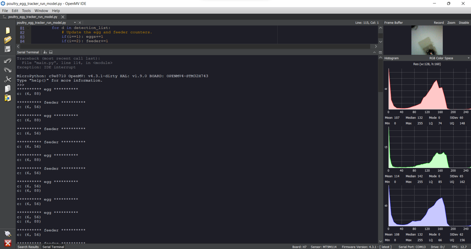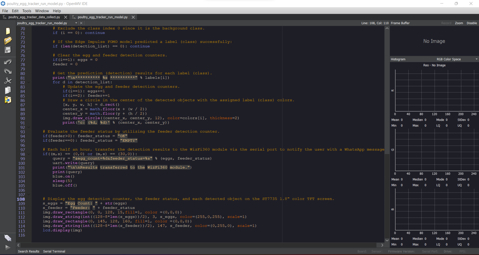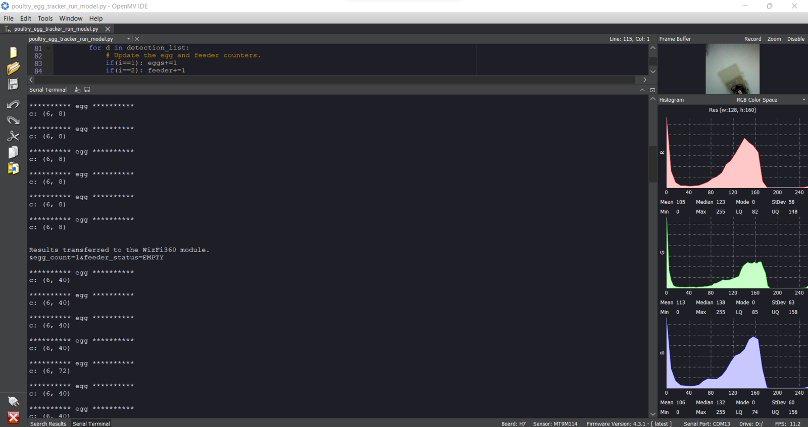 Step 7: Running the FOMO model on OpenMV Cam H7 to track unhatched eggs and the poultry feeder status