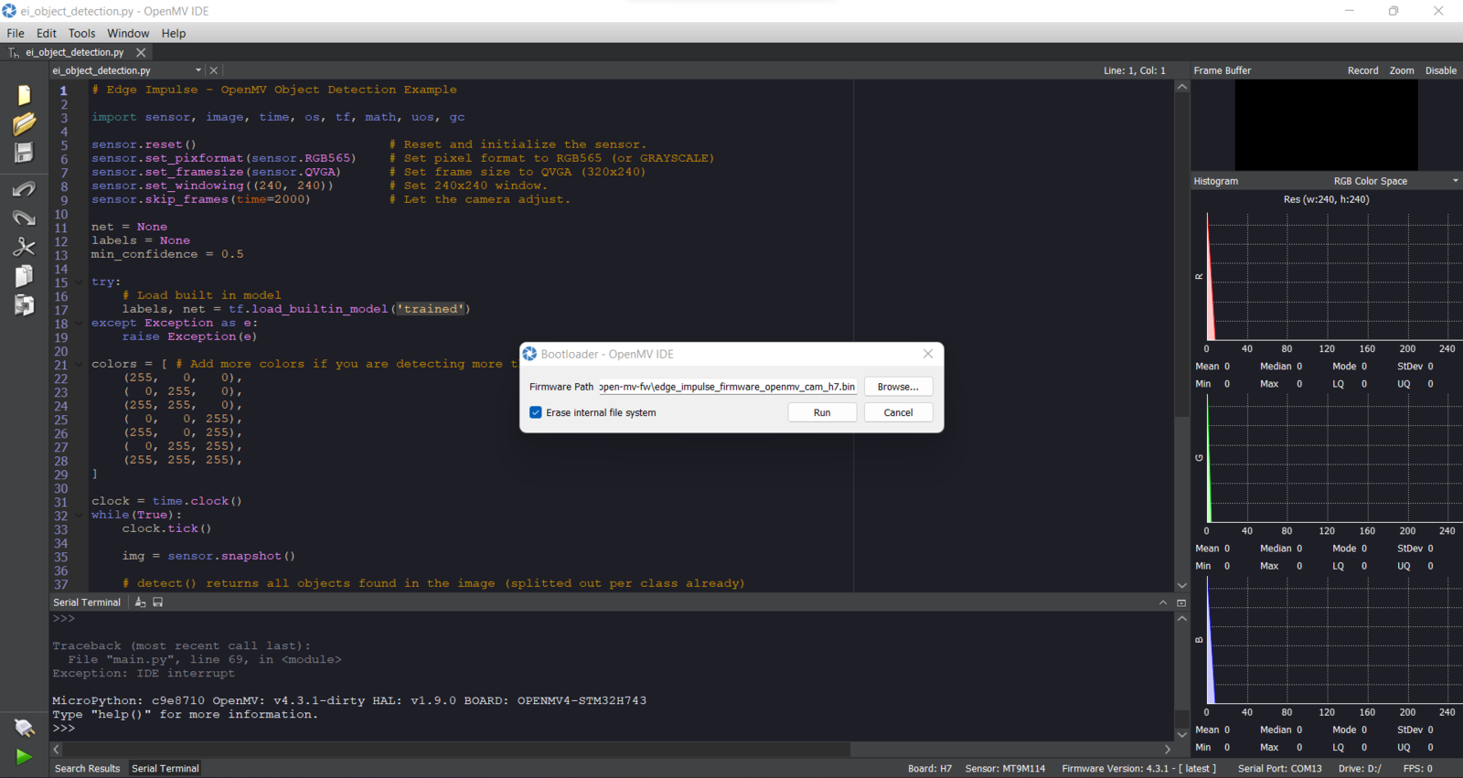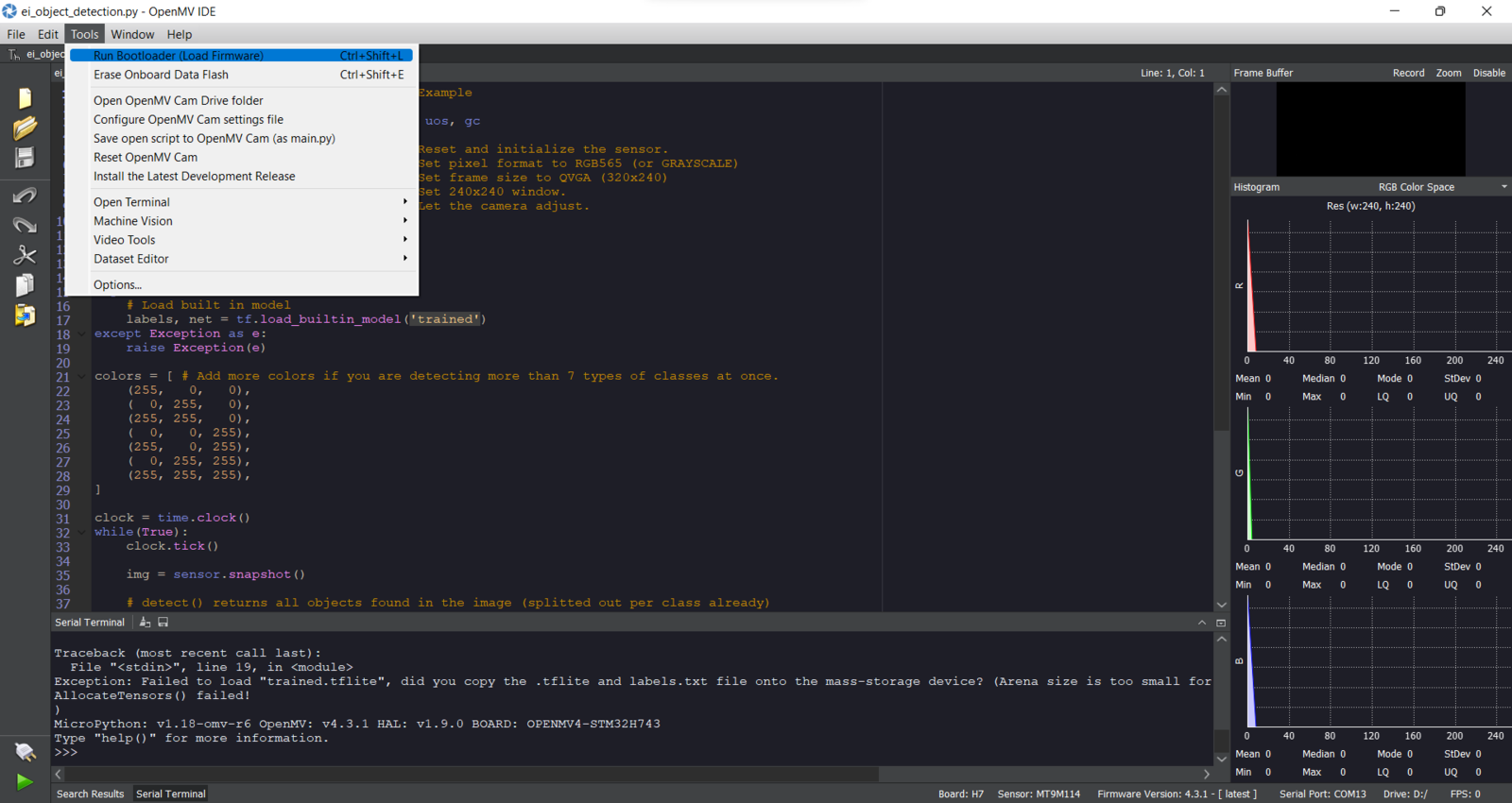 Step 6: Setting up the Edge Impulse FOMO model on OpenMV Cam H7