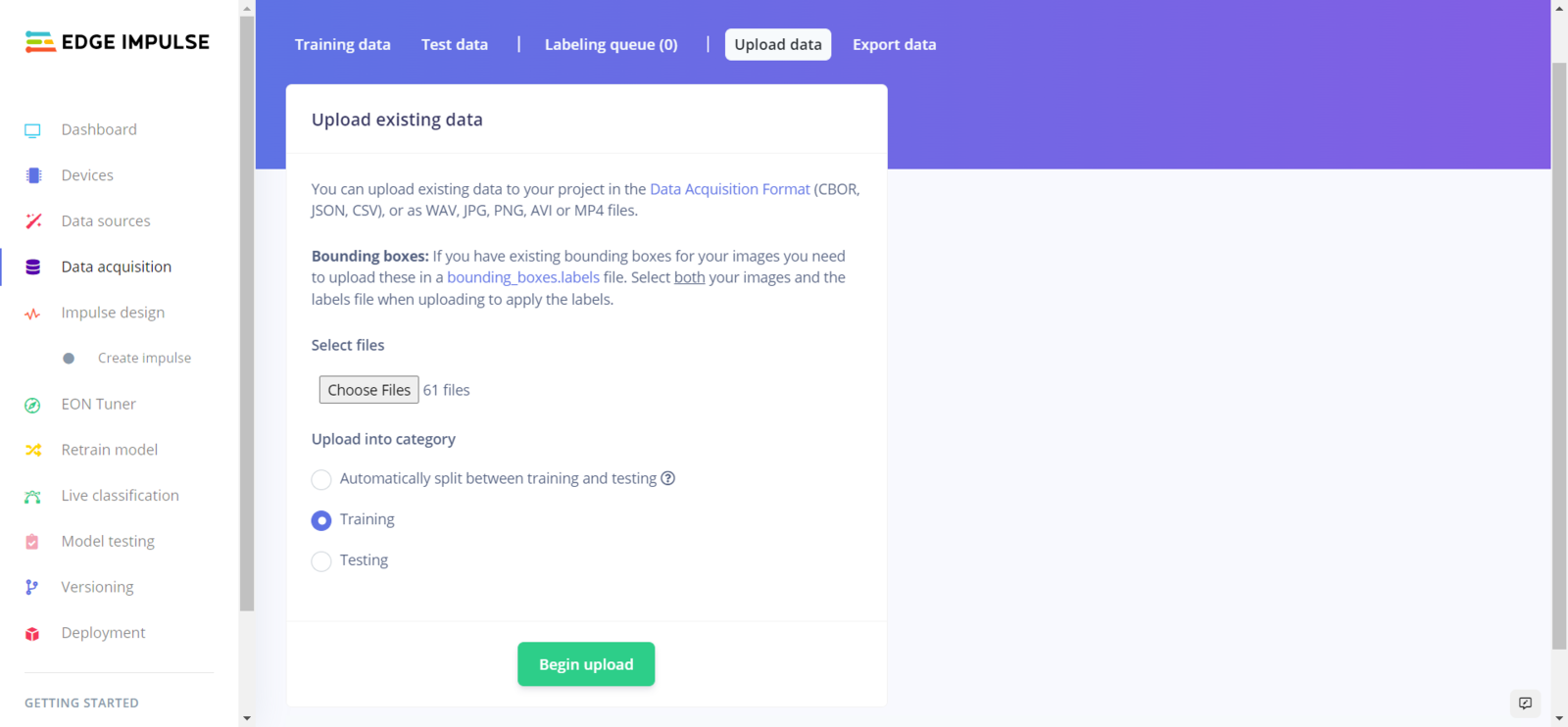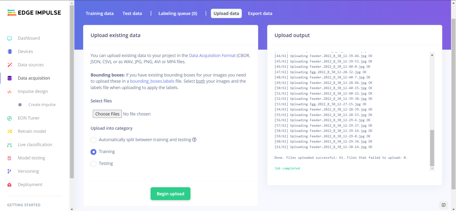 Step 5.1: Uploading images (samples) to Edge Impulse and labeling samples