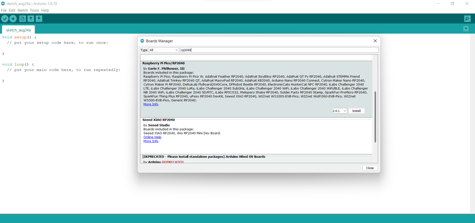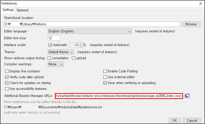 To inform the user of the detection results via WhatsApp, I needed to transfer the detection results to the PHP web application. Since OpenMV Cam H7 does not support Wi-Fi connectivity, I decided to utilize WizFi360-EVB-Pico to transmit the detection results. WizFi360-EVB-Pico is a budget-friendly development board based on the RP2040 microcontroller and pin-compatible with Raspberry Pi Pico. WizFi360-EVB-Pico enables Wi-Fi connectivity with the integrated WizFi360, an industrial-grade Wi-Fi module. Also, I connected a DHT22 temperature and humidity sensor to WizFi360-EVB-Pico to collect the current weather information and send the detection results with the collected weather data to the web application. Before proceeding with the following steps, I needed to set up WizFi360-EVB-Pico on the Arduino IDE and install the required libraries for this project. :hash: To add the WizFi360-EVB-Pico board package to the Arduino IDE, navigate to File ➡ Preferences and paste the URL below under Additional Boards Manager URLs. https://github.com/earlephilhower/arduino-pico/releases/download/global/package\_rp2040\_index.json