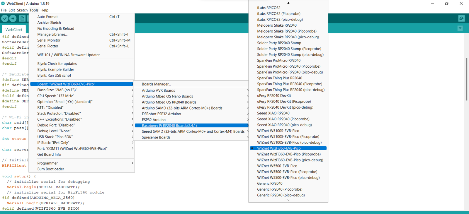 Step 8: Setting up WizFi360-EVB-Pico to collect weather data and communicate w/ OpenMV Cam H7