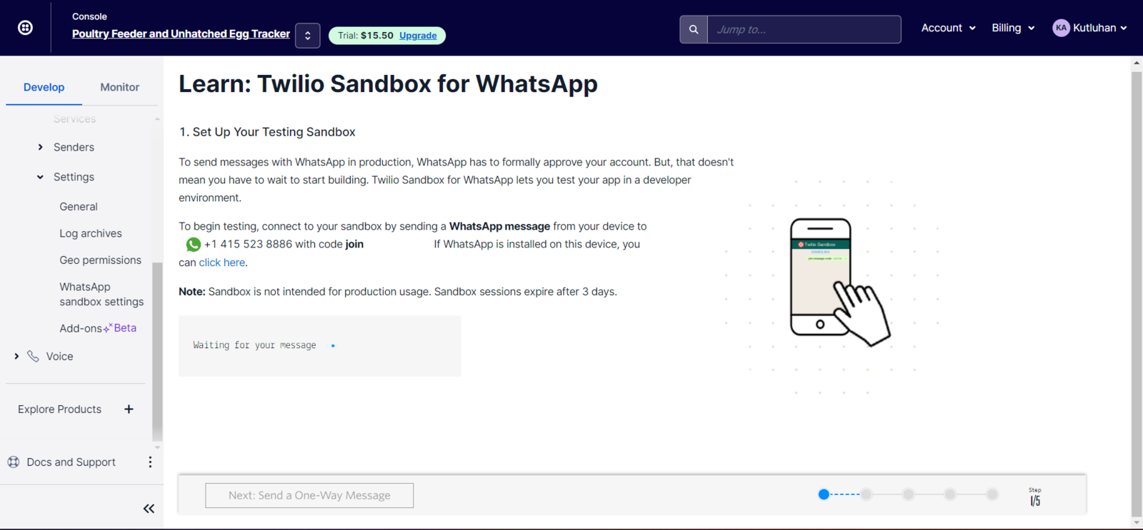 Step 2: Creating a Twilio account to send messages over WhatsApp