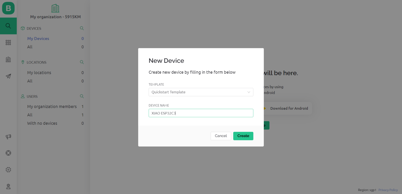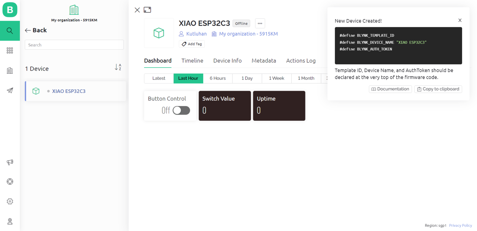 Step 2: Creating a Blynk application and user interface for XIAO ESP32C3