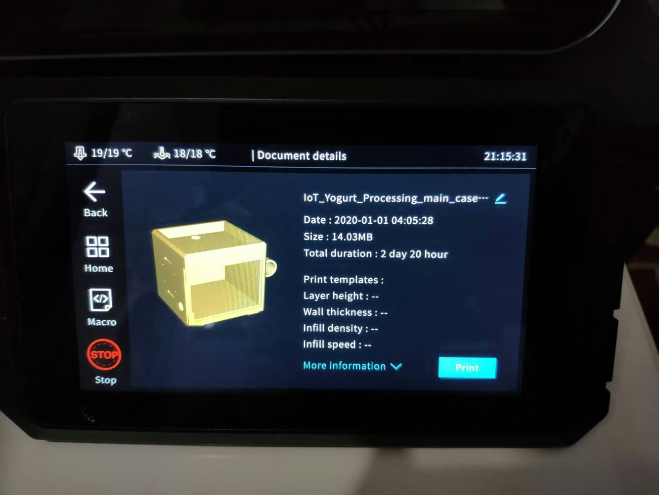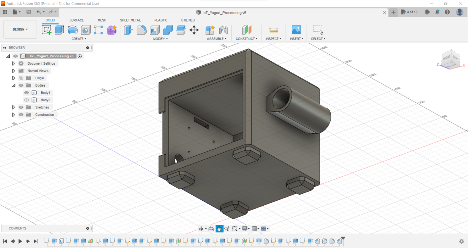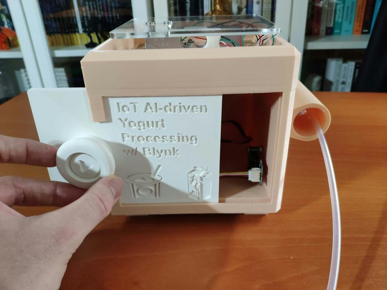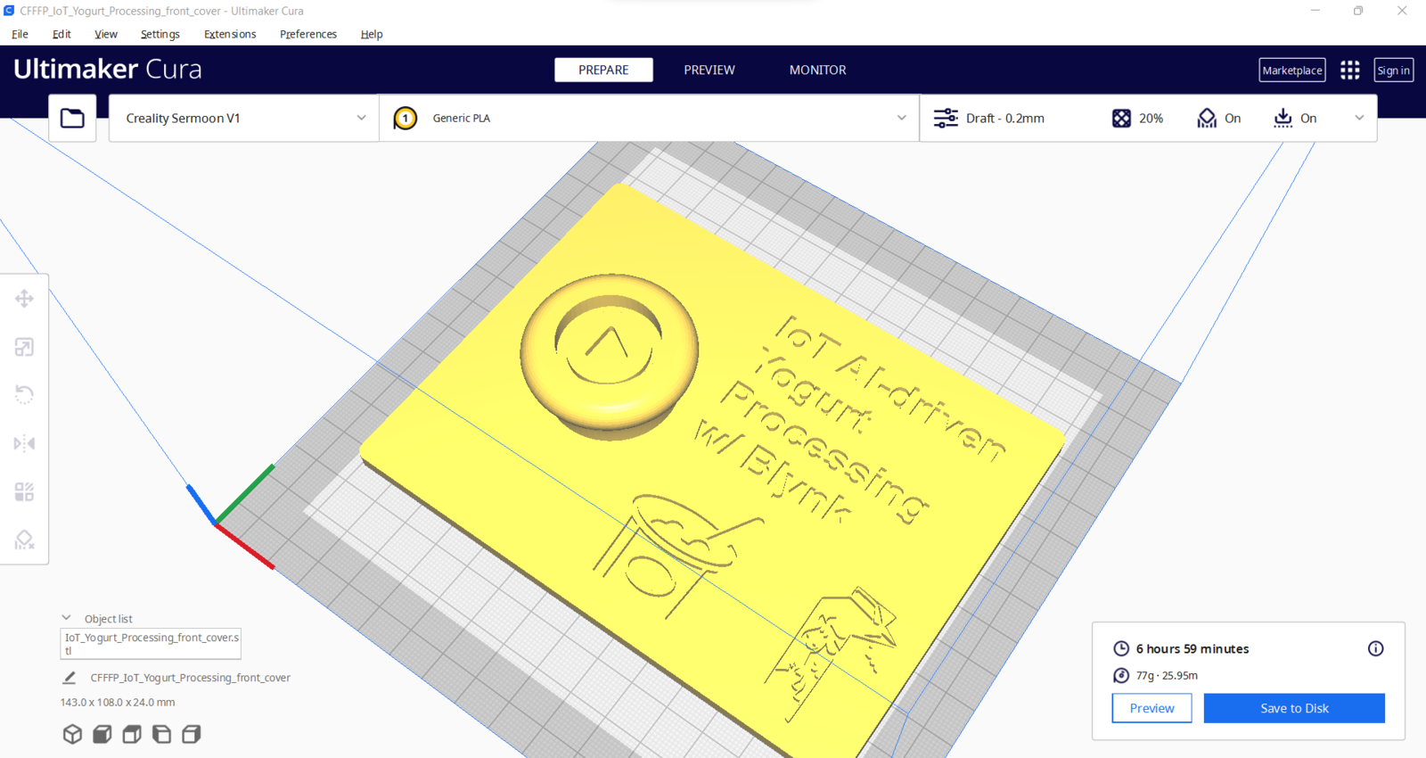 Since I focused on building a budget-friendly and easy-to-use device that collects yogurt processing data and informs the user of the predicted yogurt consistency level before fermentation, I decided to design a robust and sturdy case allowing the user to access the SD card after logging data and weigh yogurt culture (starter) easily. To avoid overexposure to dust and prevent loose wire connections, I added a sliding front cover with a handle to the case. Also, I decided to emboss yogurt and milk icons on the sliding front cover so as to complement the dairy theme gloriously. Since I needed to adjust the rubber tube length of the integrated pressure sensor, I added a hollow cylinder part to the main case to place the rubber tube. Then, I decided to fasten a small cow figure to the cylinder part because I thought it would make the case design align with the dairy theme. I designed the main case and its sliding front cover in Autodesk Fusion 360. You can download their STL files below.
