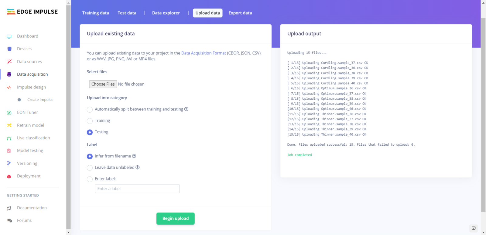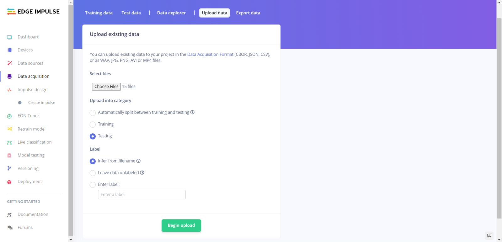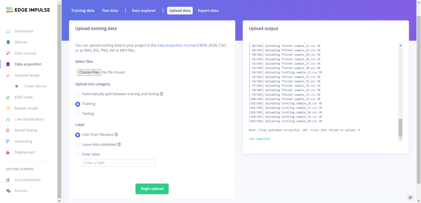 Step 5.2: Uploading formatted samples to Edge Impulse