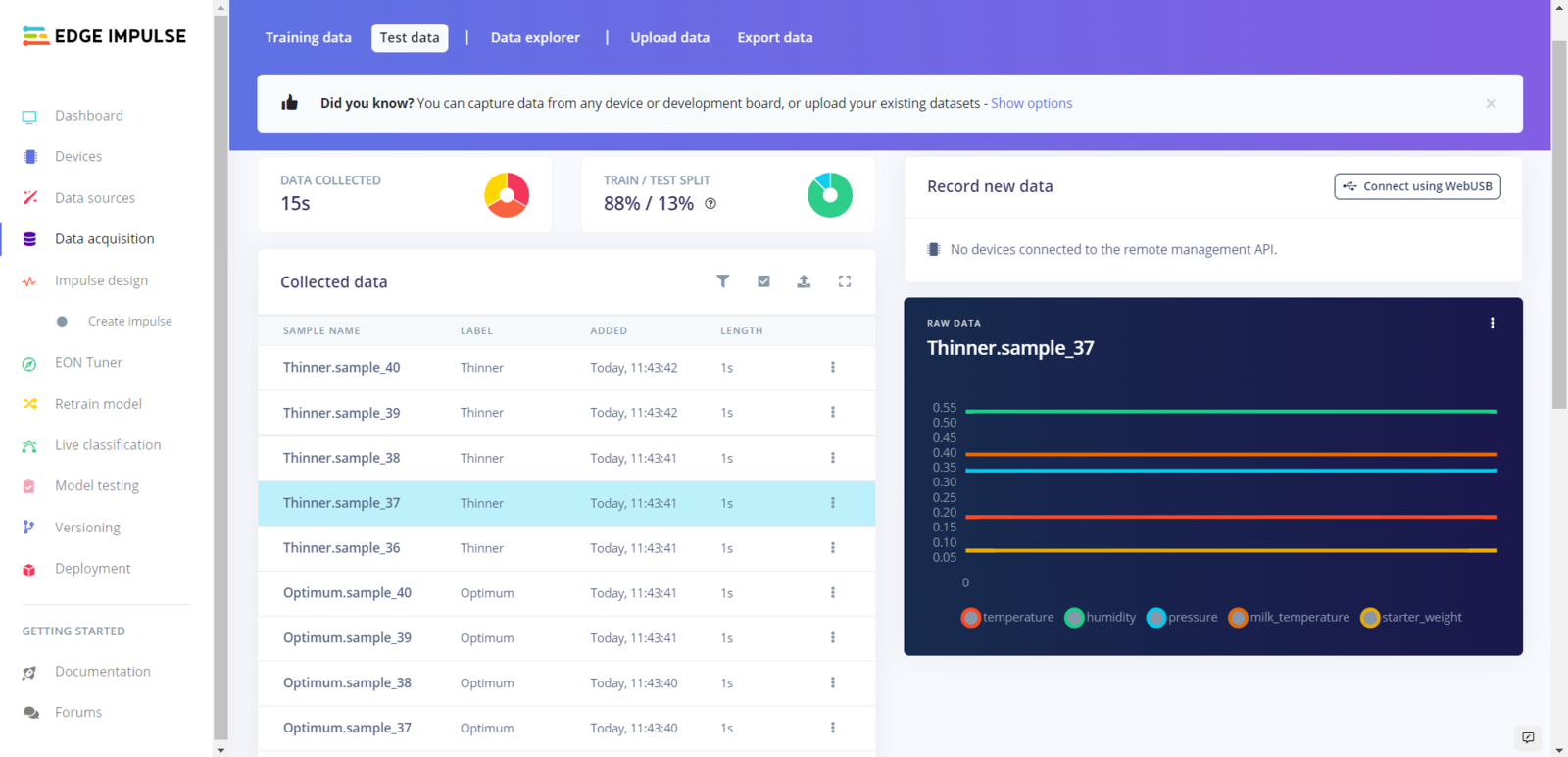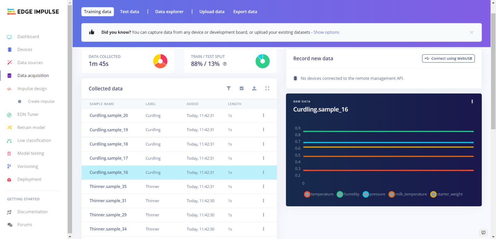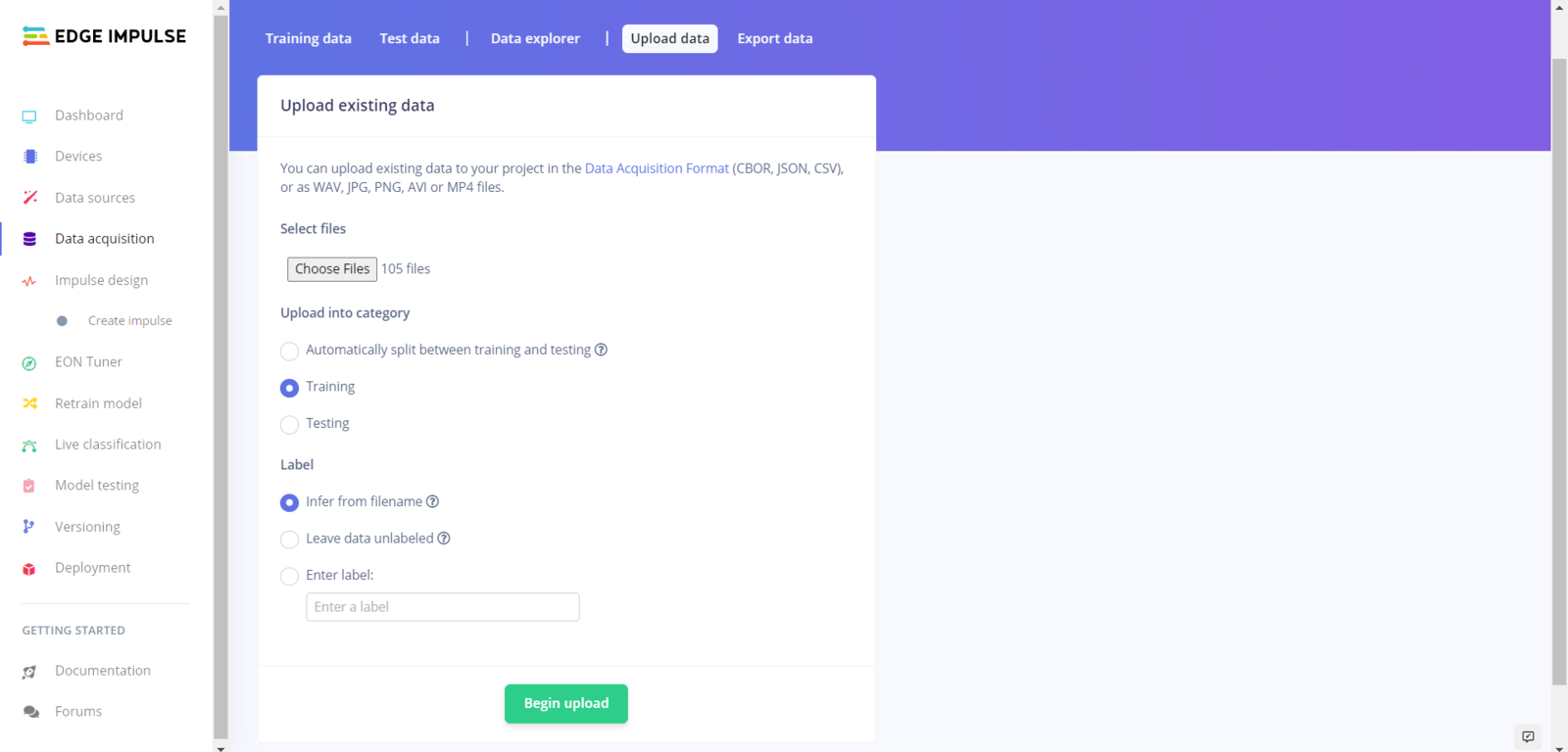 Step 5.2: Uploading formatted samples to Edge Impulse