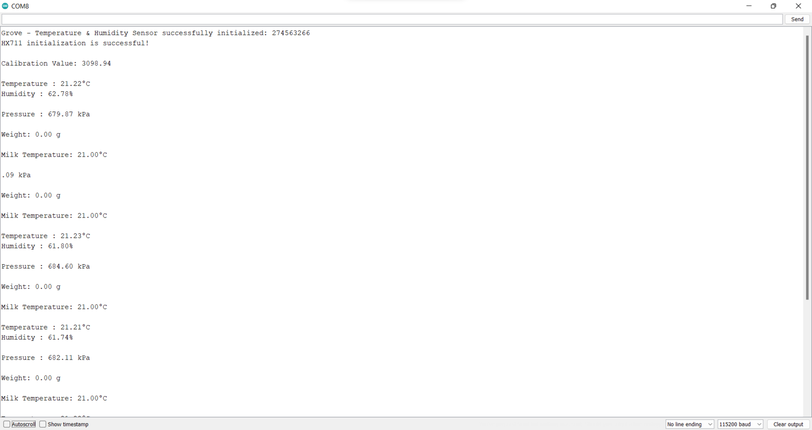 After setting up XIAO ESP32C3 and installing the required libraries, I programmed XIAO ESP32C3 to collect environmental factor measurements and the culture (starter) amount in order to save them to the given CSV file on the SD card.- Temperature (°C)