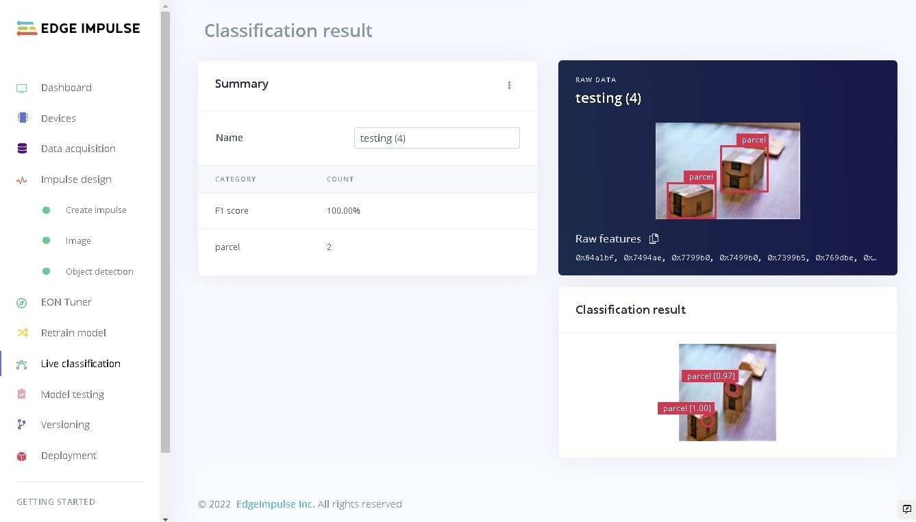 We can use this model to monitor delivered parcels, and take some actions such as sounding an alarm or sending a text message when no parcel, or fewer parcels are detected. A build library will allow us to add custom code to the predictions. We can check if one or more parcels are predicted, save the count, and then monitor the predictions count. If predictions count goes down, that means a parcel(s) is missing and we can raise an alarm using our development board, and even send a signal to other home automation devices such as security cameras or alarms. Edge Impulse has also developed a feature that enables sending an SMS based on inference from our model. This feature works with Development boards that support Edge Impulse for Linux, such as the Raspberry Pi. The repository and documentation can be found here.