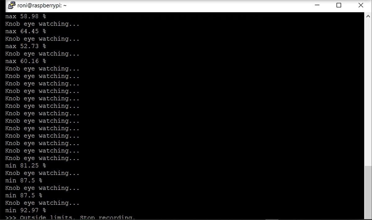 The Behringer’s main mix knob will be used. If this knob is too low or too high, a recording is considered wasted, so it should be aborted. To start the training, a good number of pictures with variations of the knob in both low and high positions is required. For other Machine Learning projects related to analog readings, one image is obtained and then digitally manipulated to add, for example, a needle in different positions. I have decided to use a different approach: a script for image acquisition with pauses to move the knob. Why? It is an effort to digitally manipulate an image, and if you are using knobs instead of gauges, the knob height could produce different shadows making the digital manipulation more complicated. You can download a sample data acquisition script, and the recording script from: https://github.com/ronibandini/MLAnalogKnobReading Place the camera in the 3d printed arm, around 10cm over the knob, with good lighting. Place the knob in the “Minimum” (low) position. Then on the Raspberry Pi, run:
