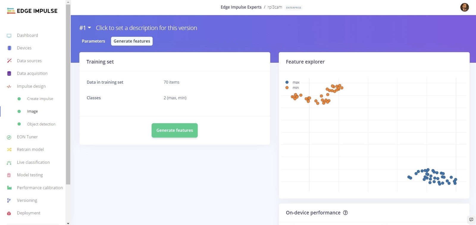 From the Deployment page on the left menu, select the “Linux Boards” deployment options. Select “Linux (ARMv7)”, and download the generated firmware (.eim file), then copy the file to the Raspberry Pi. Once on the Pi, you may need to change the file permissions of the .eim file to 744.